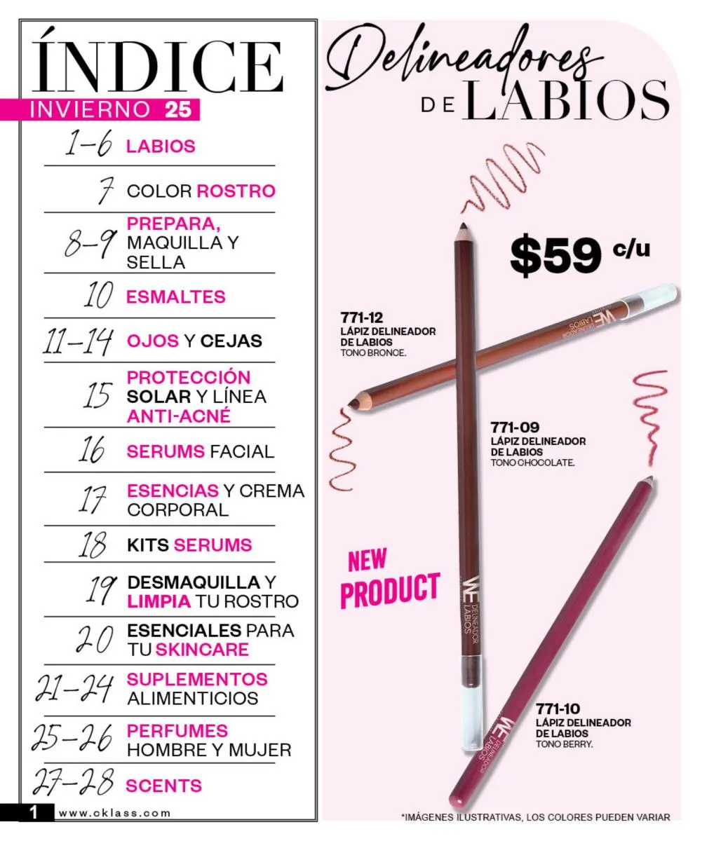 Consigue la piel perfecta con todos los productos que catálogo Cklass We Cosmetic Invierno 2025 México tiene para ti.