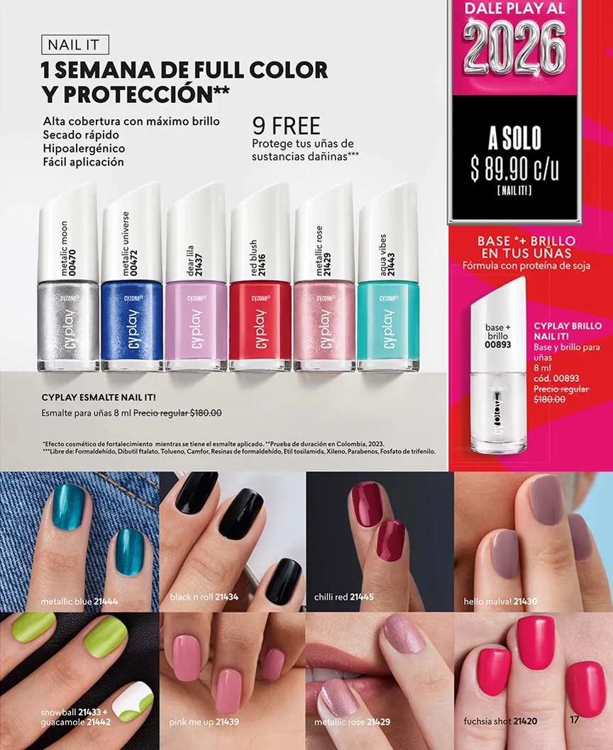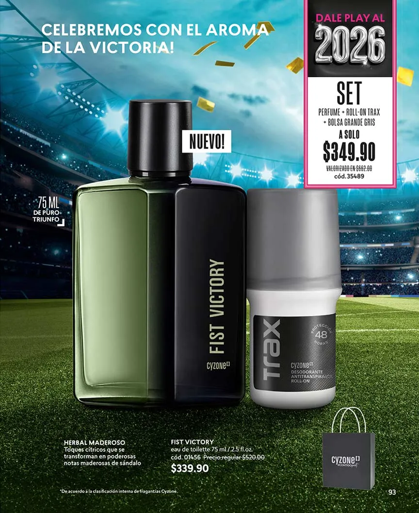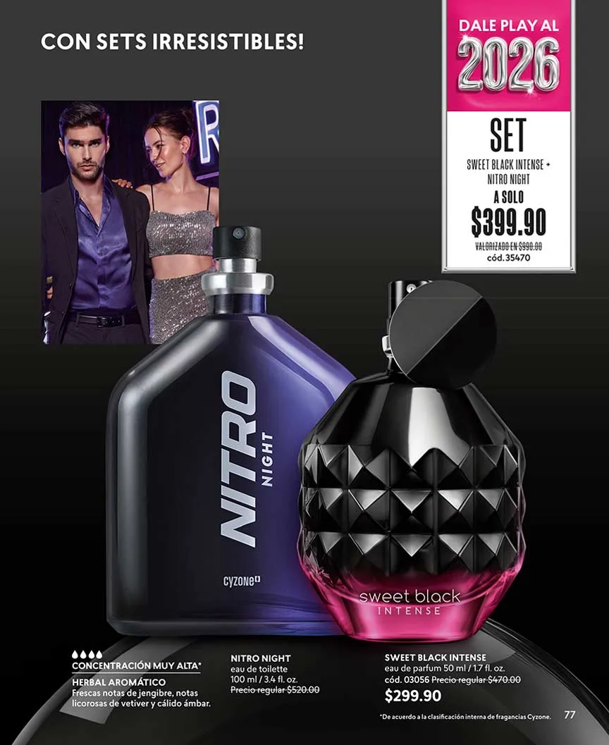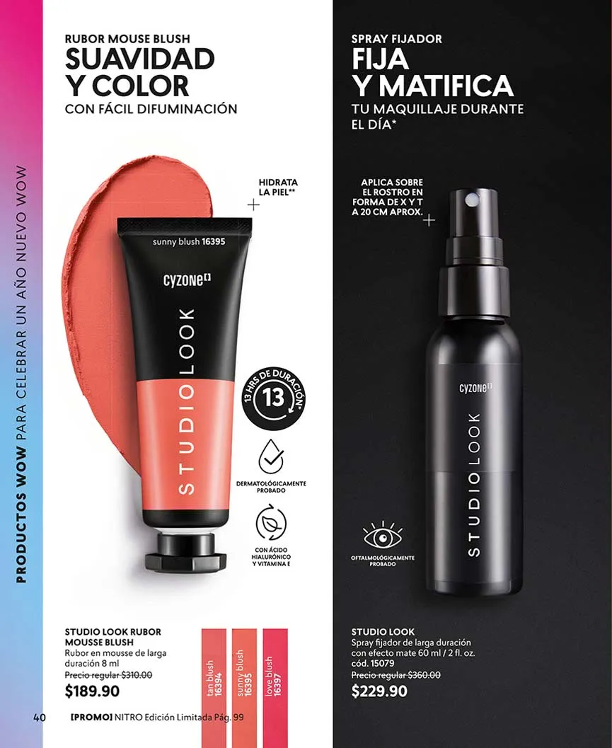 Puedes llevarla en 2 maravillosos sets, escogiendo entre un delineador o una pulsera con dijes. Para afianzar tu fuerza, sensualidad y tu glam, lleva a mitad de precio “Sweet Chic”. Si de maquillaje se habla, catálogo Cyzone campaña 1 México 2026 es un precursor y te trae los colores más variados al mejor precio.