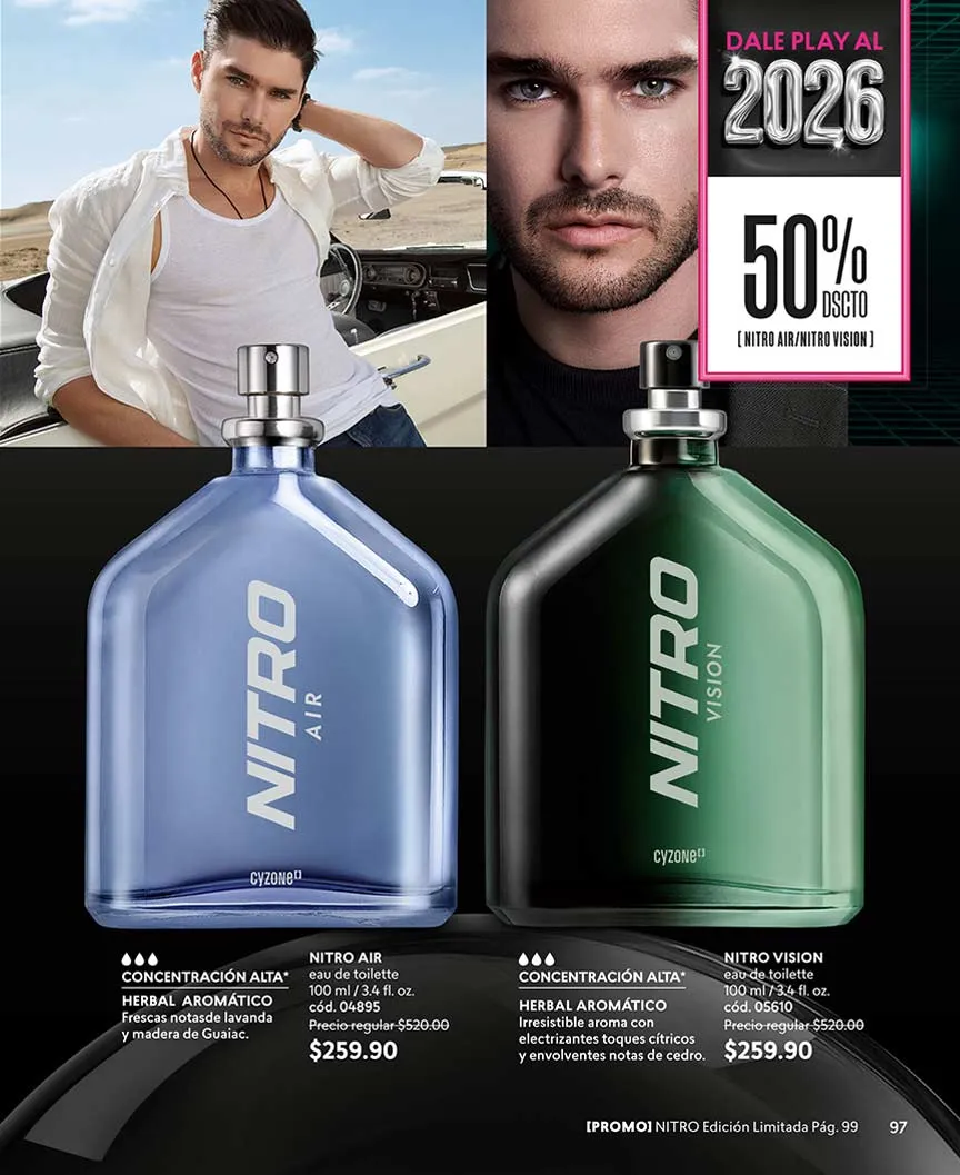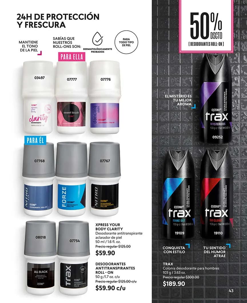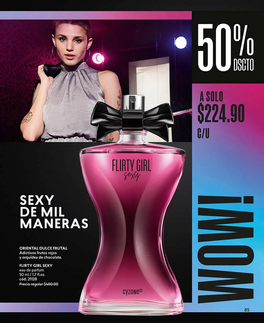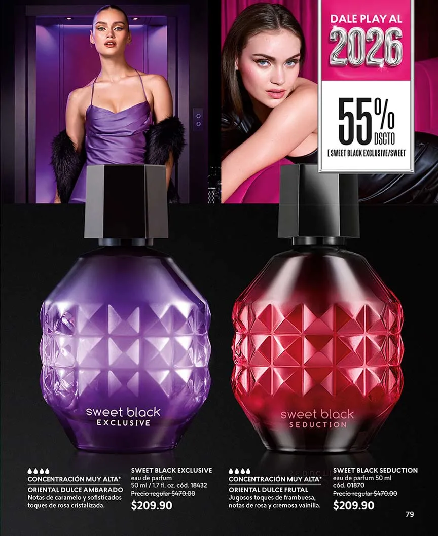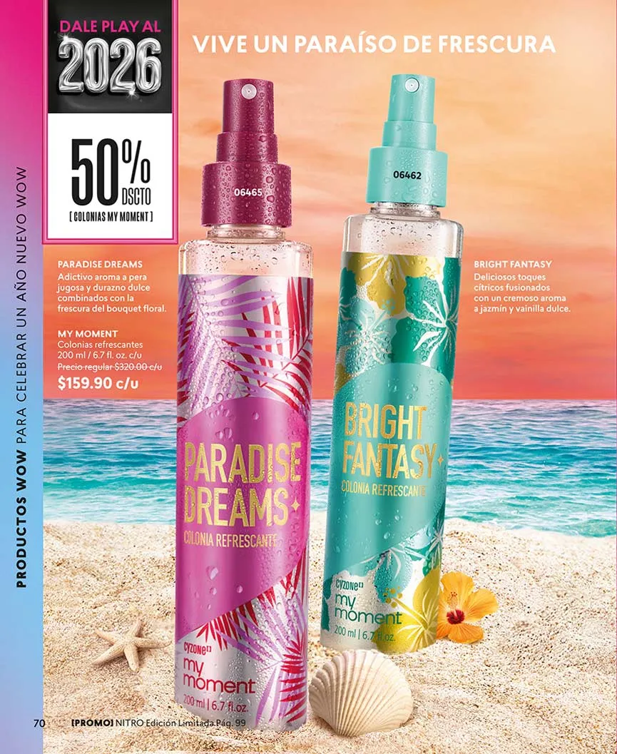 Luego combínalo con la frescura de “Viva Happy” al llevar uno de los tonos, el otro te lo llevas gratis. Aprovecha los sets “Dancing Sunset” y “Dancing Night” a un precio especial. Un aroma frutal que no puedes desaprovechar es “Feel” a mitad de precio. “Miss Sexy” te da la opción de escoger 3 de sus colonias refrescantes para que los disfrutes como prefieras, y “Berrilicious” te brinda el 50% de descuento en cualquiera de sus presentaciones. Para tu cabello, puedes llevarte la línea “Be Sexy” rizos más sexys o lisos más lisos, con 50% de descuento.