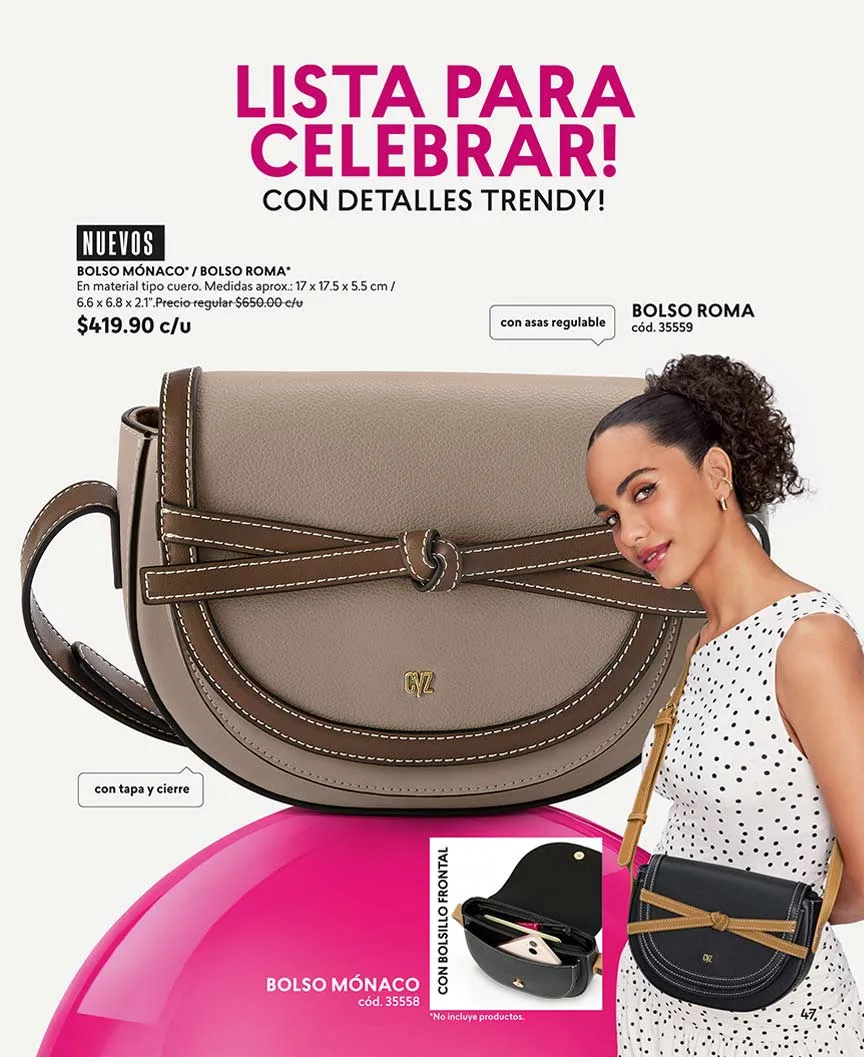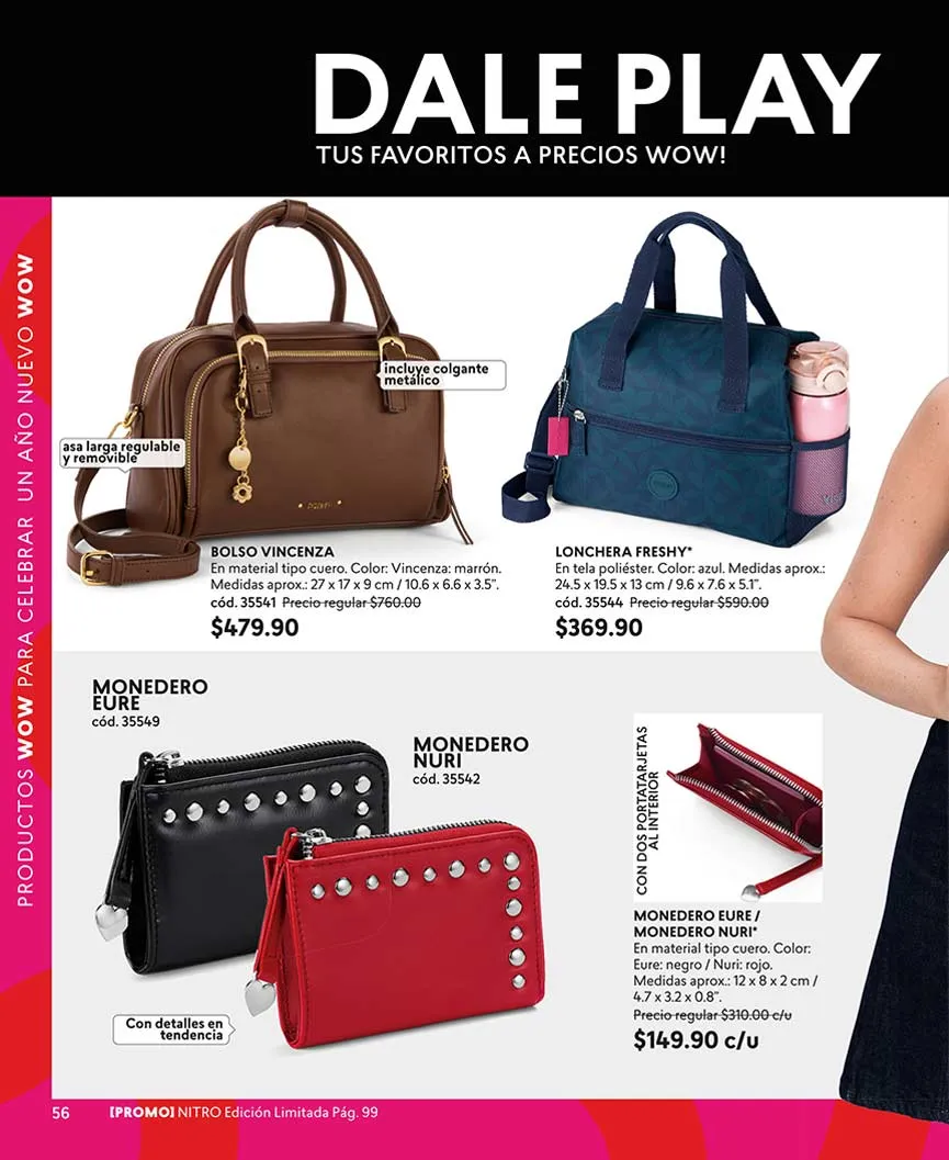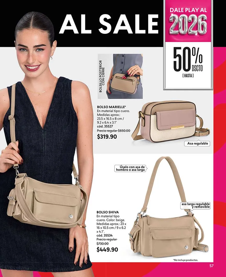 Y para perfilar tu rostro, la paleta “Studio Look” para resaltar, definir, acentuar, destacar e iluminar tu cara al momento de prepararlo para el maquillaje. Llegó el momento de completar tu look con los hermosos bolsos, carteras, portatodo, relojes y accesorios con promociones especiales. Cuida tu piel con los mejores tratamientos de “Skin F1rts”, limpia, hidrata y termina con una mascarilla para una piel más suave, con 50% de descuento.