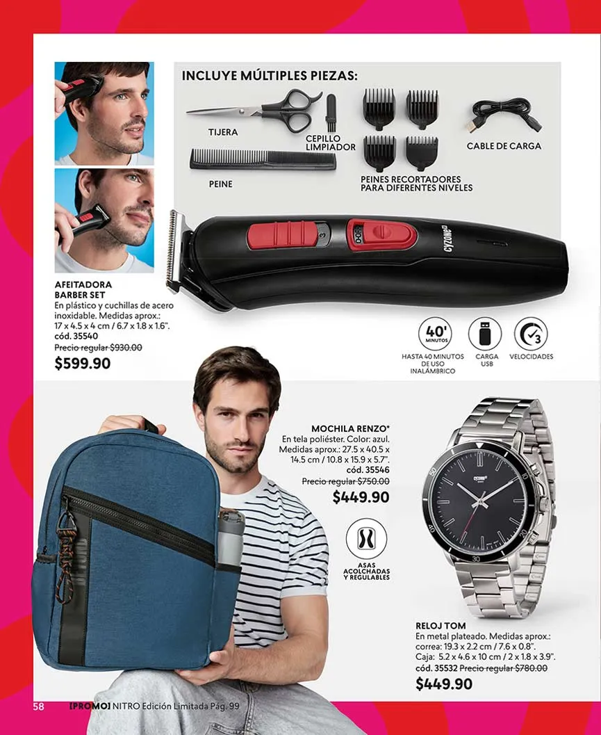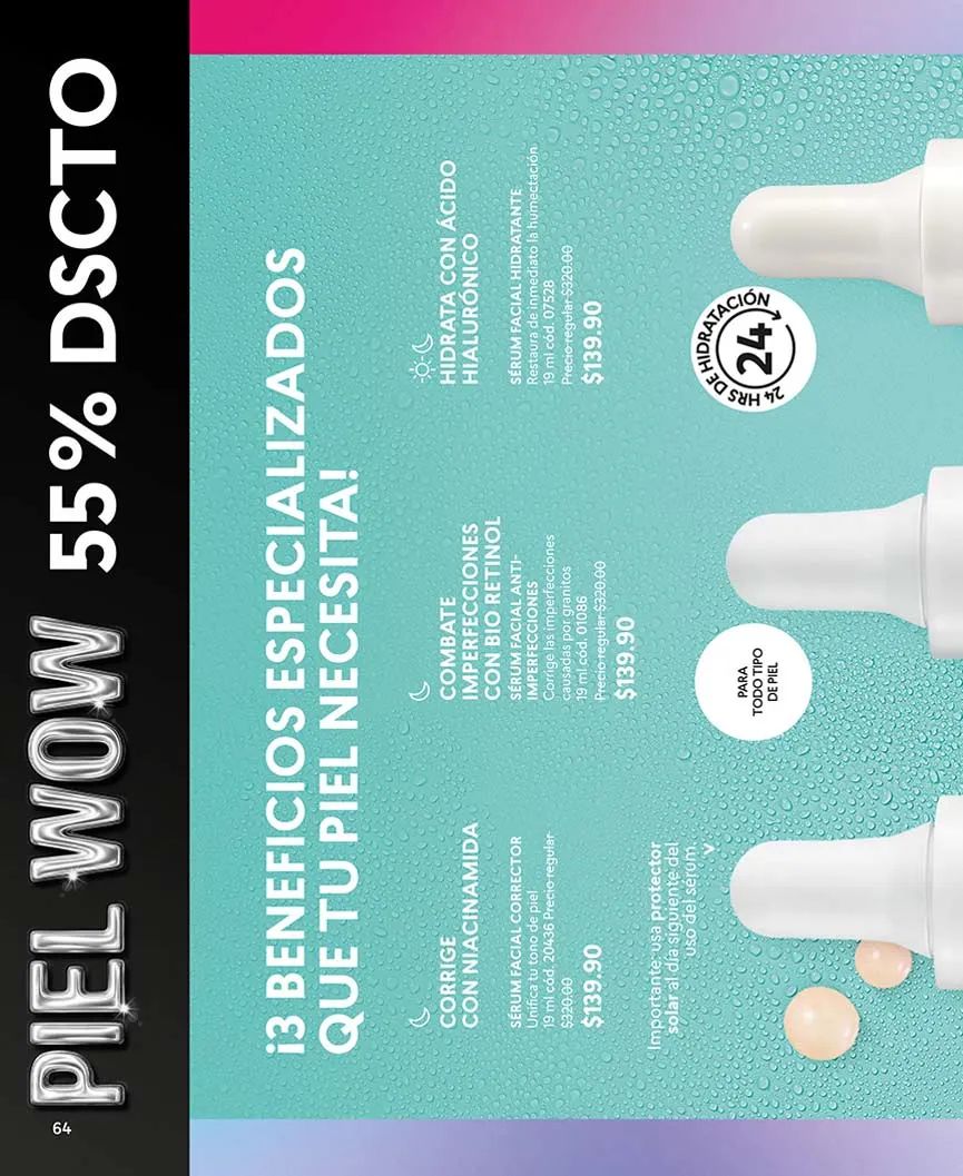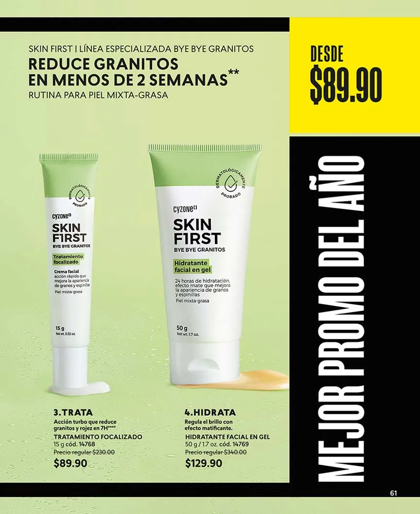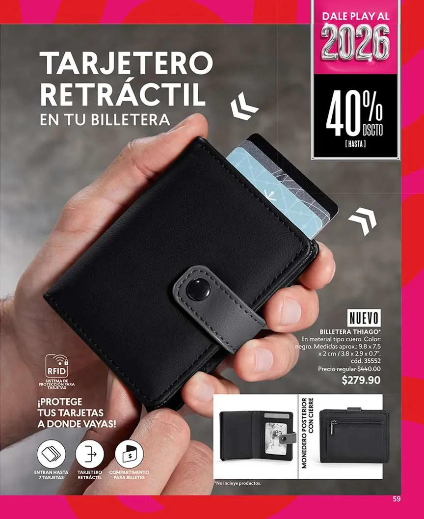 Y para perfilar tu rostro, la paleta “Studio Look” para resaltar, definir, acentuar, destacar e iluminar tu cara al momento de prepararlo para el maquillaje. Llegó el momento de completar tu look con los hermosos bolsos, carteras, portatodo, relojes y accesorios con promociones especiales. Cuida tu piel con los mejores tratamientos de “Skin F1rts”, limpia, hidrata y termina con una mascarilla para una piel más suave, con 50% de descuento.