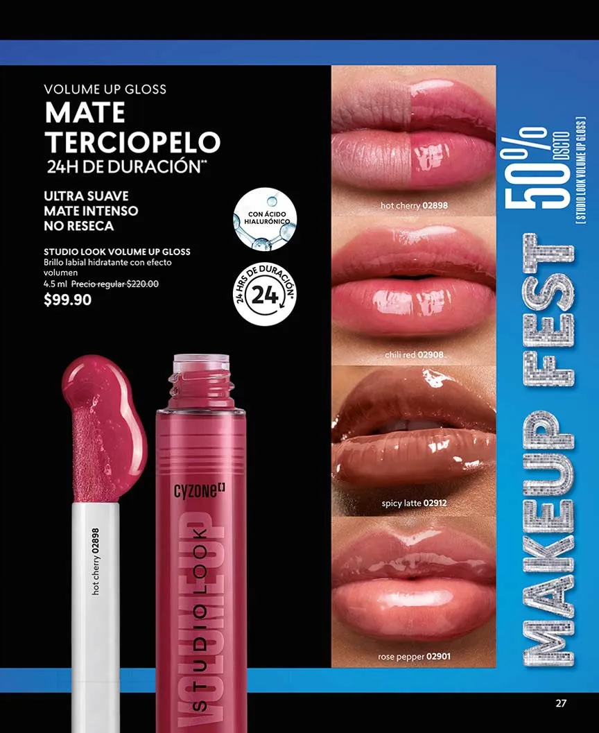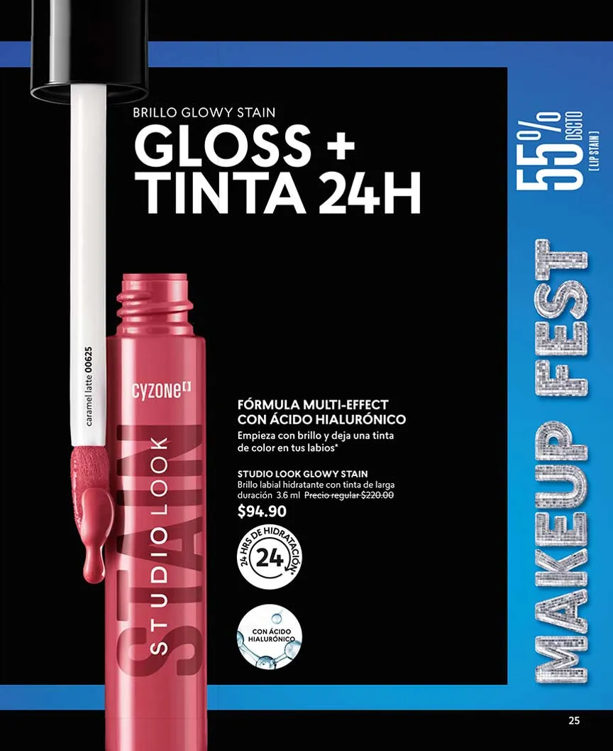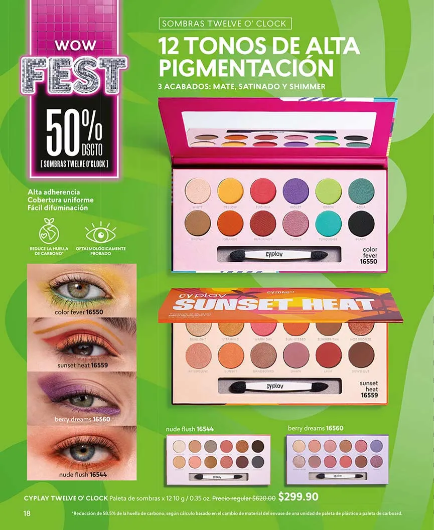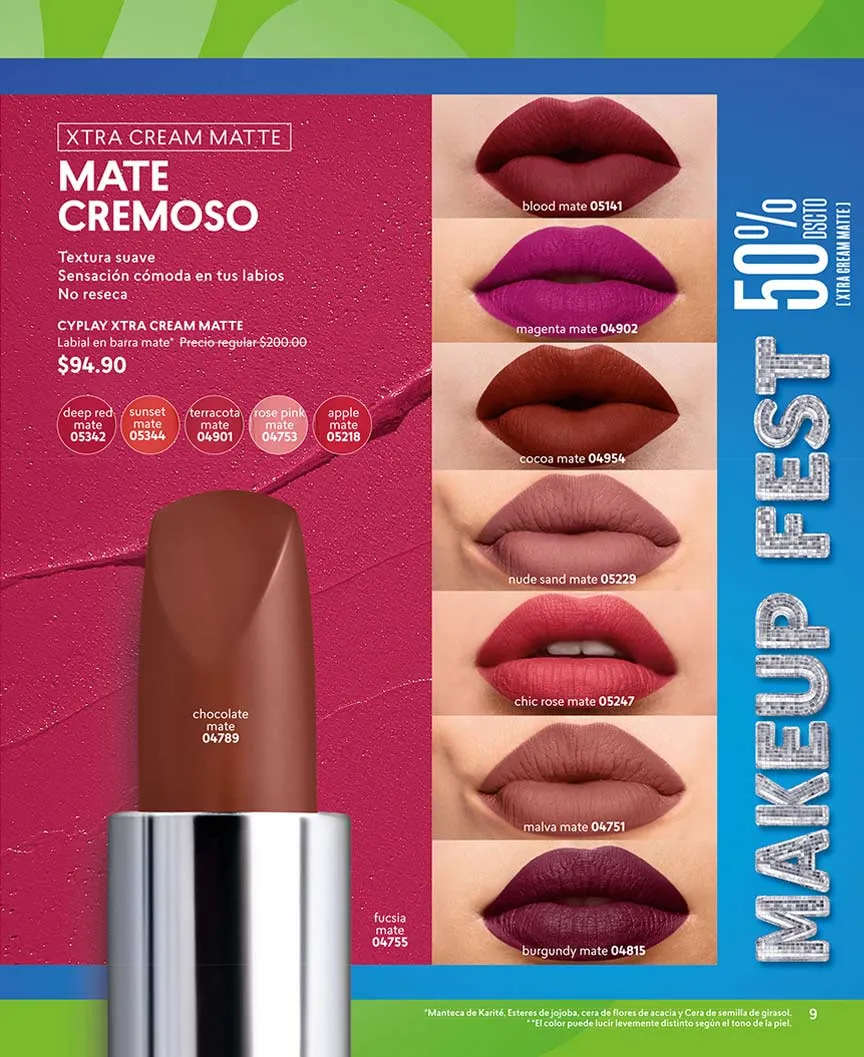 Con 50% de descuento puedes llevarte el juego de sombras “Cy Twelve O´Clock”, con 12 hermosos colores juveniles. Los tonos intensos llegan con los labiales “Cy X-Tra Time”, con acabados mate, al mejor precio. Bríndale el mejor brillo a tus labios con “Cy Star Glow” efecto extra gloss, al 50% de descuento.