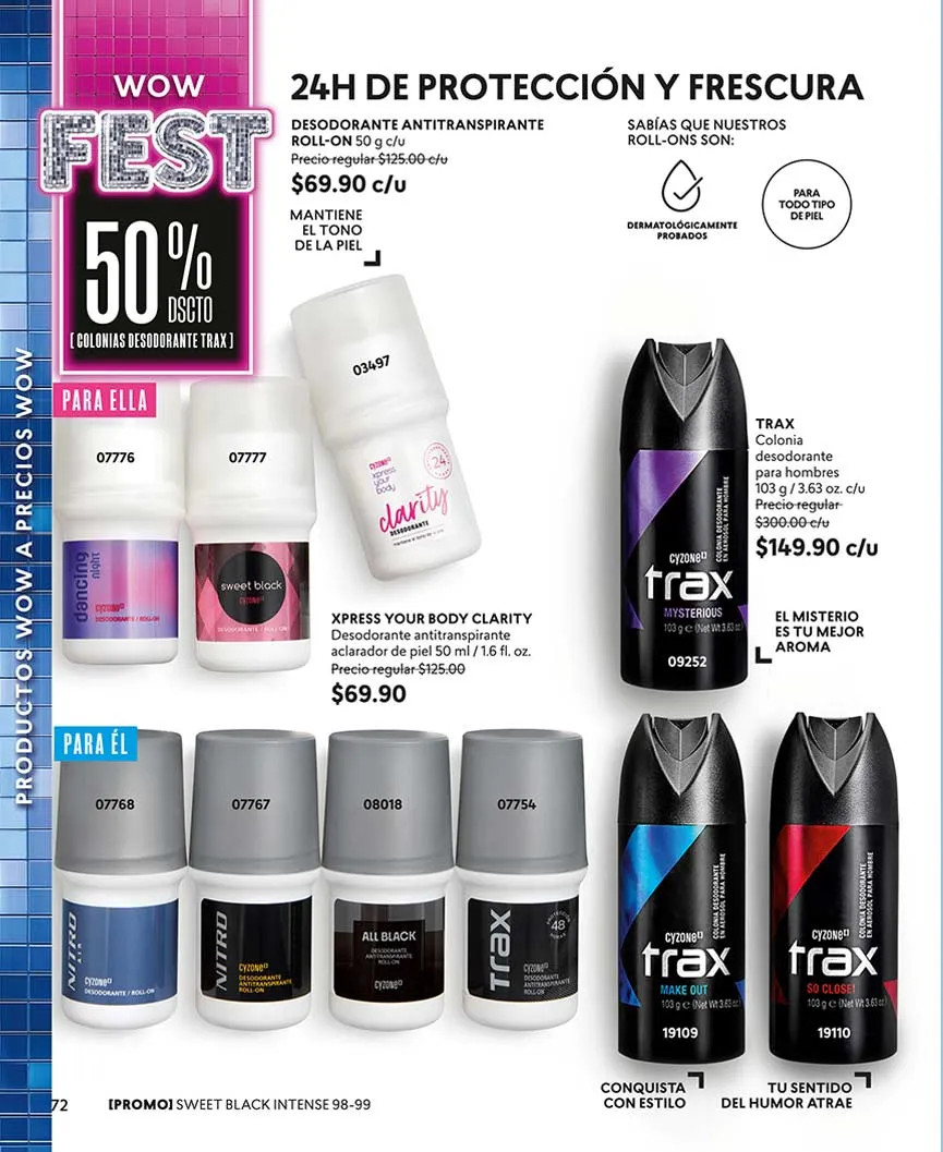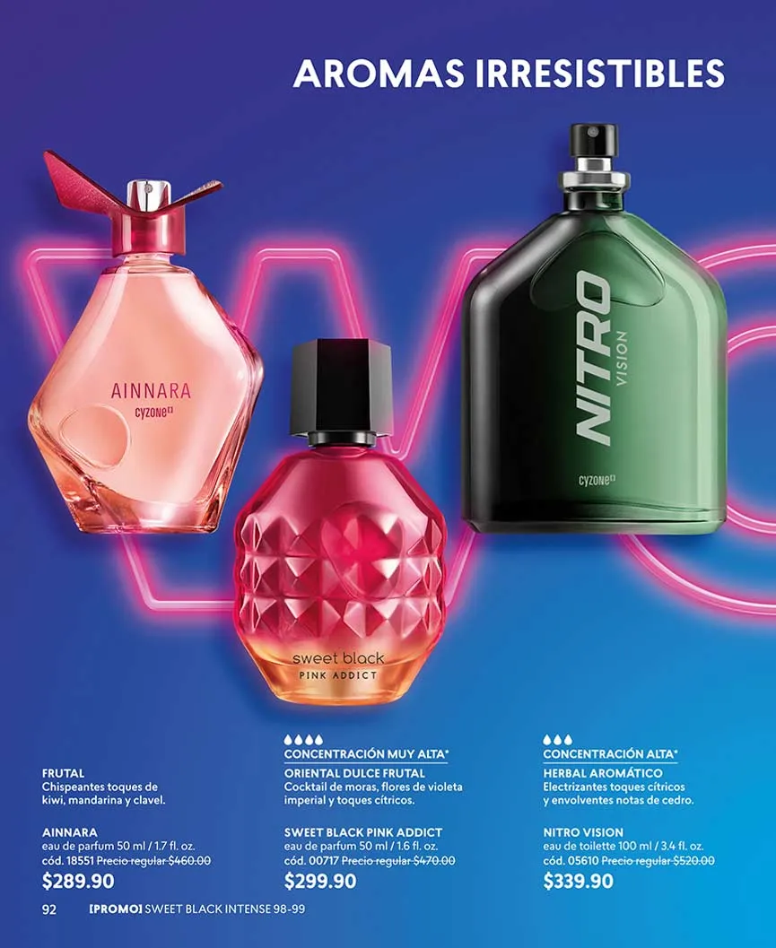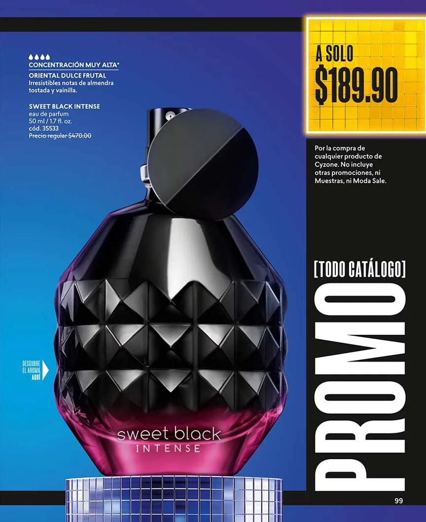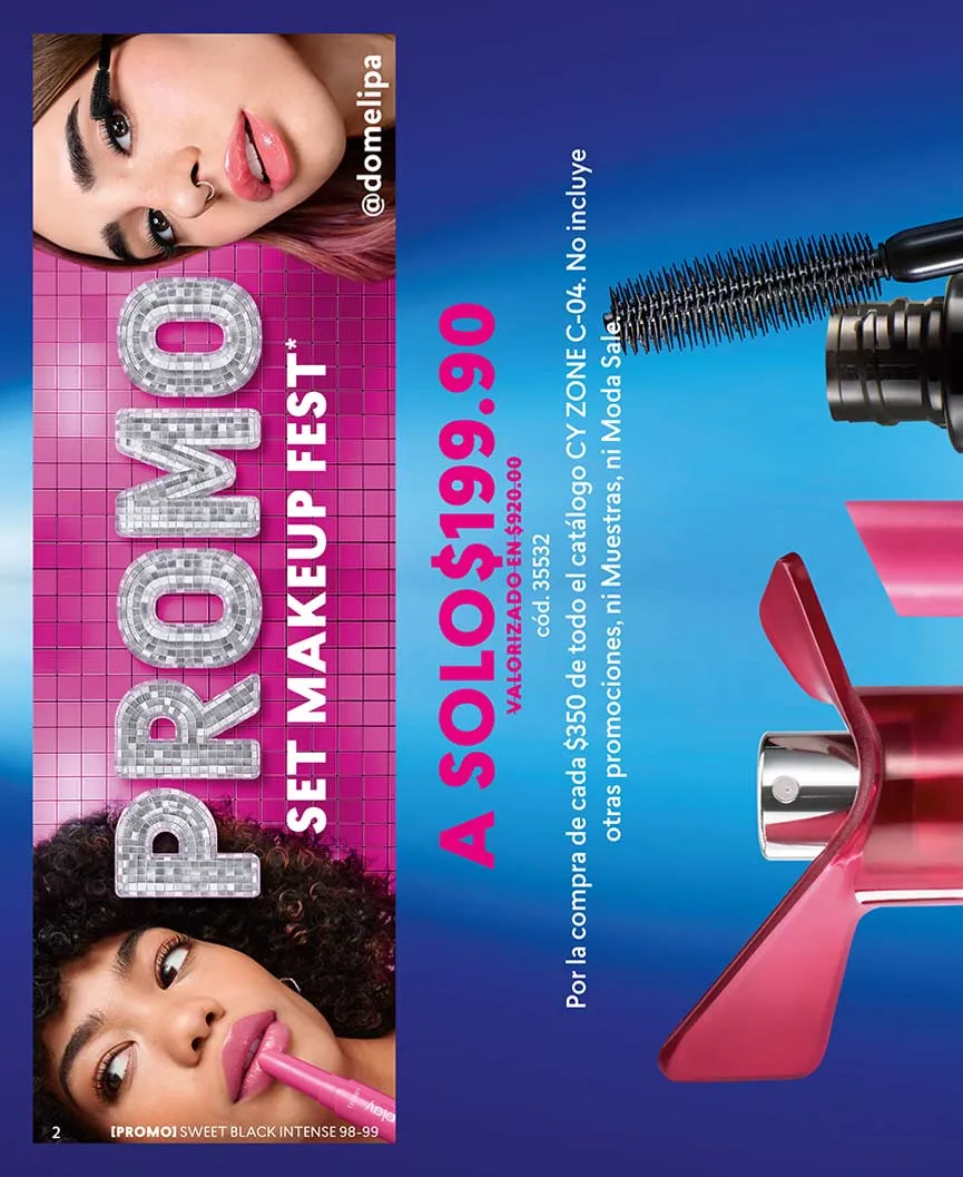 Oferta Wow: “Cy Lash Power Intensive” te regala más volumen, más tamaño, más color, más definición y más rizado a tus pestañas, a mitad de precio. Delinea como siempre quisiste con el “Cy Line 4 Ever Plumón” con acabado metálico, o el “Cy Line 4 Ever Pincel”, ambos al 50% de descuento. Cyzone también tiene promociones en sus fragancias, como es el caso del Set “Sweet Black Intensive”.