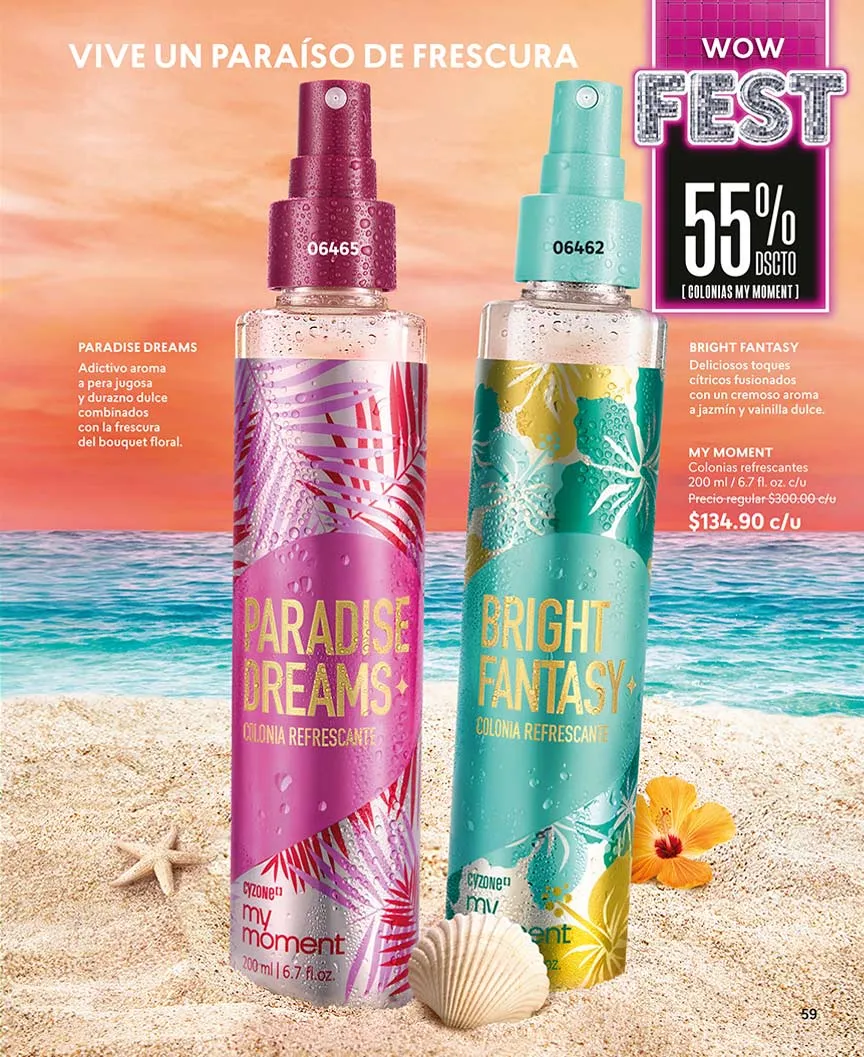 Llévate “Feel”, una combinación floral entre durazno y orquídeas con 50% de descuento, o “in Love” con aroma frutal.