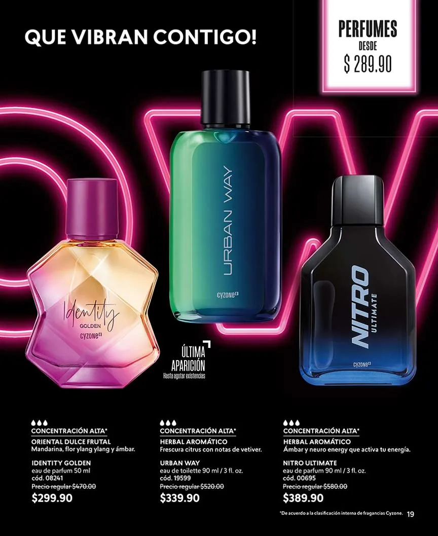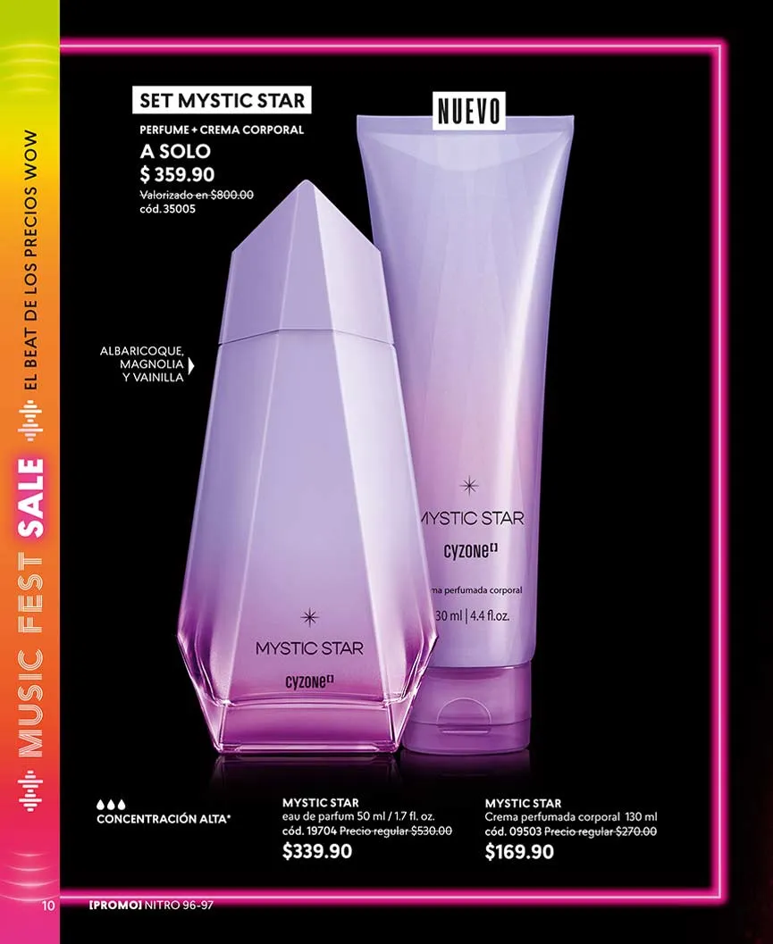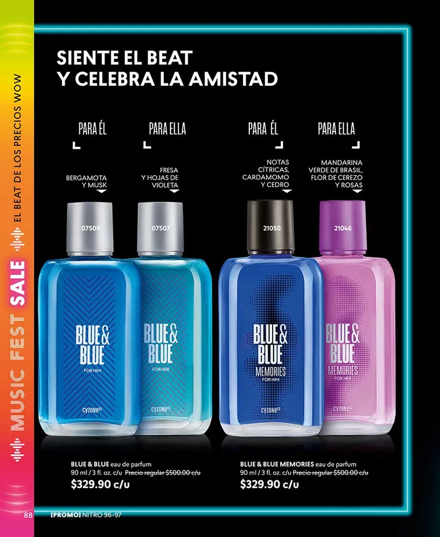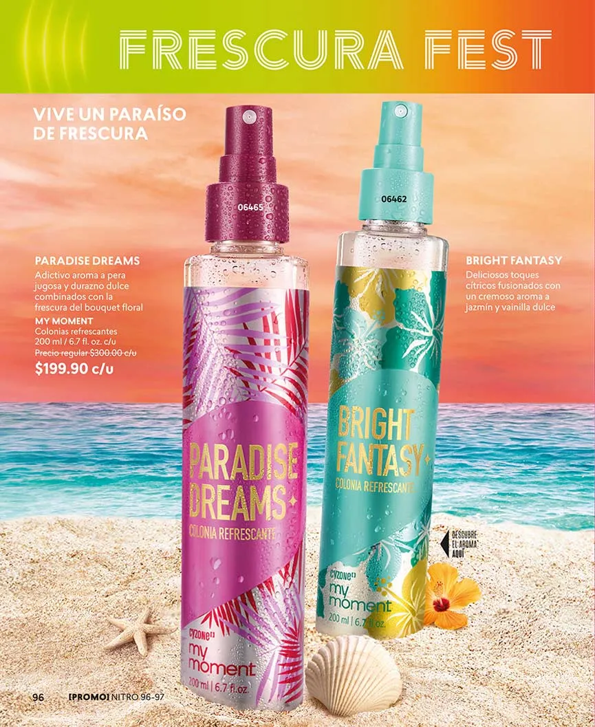 ¿Y las fragancias? Aquí te las presentamos. «Dancing Sunset» con su aroma dulce oriental, lo encuentras con 50% de descuento. En set, llévate el «Sweet Black 1» o «Sweet Black 2». Puedes escoger entre delineador o loción perfumada.