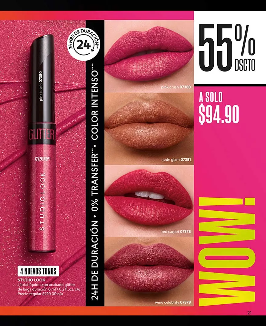 Para labios asombrosos la Oferta Wow, con 50% de descuento te ofrece labiales en barra de larga duración. Catálogo Cyzone campaña 5 México 2026 es variedad en bolsos, carteras, mochilas y accesorios que llegan hasta con 25% de descuento.