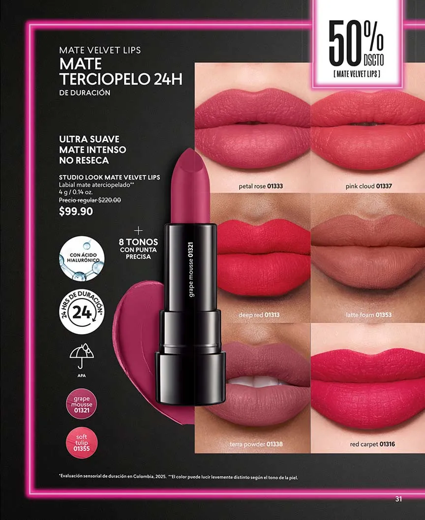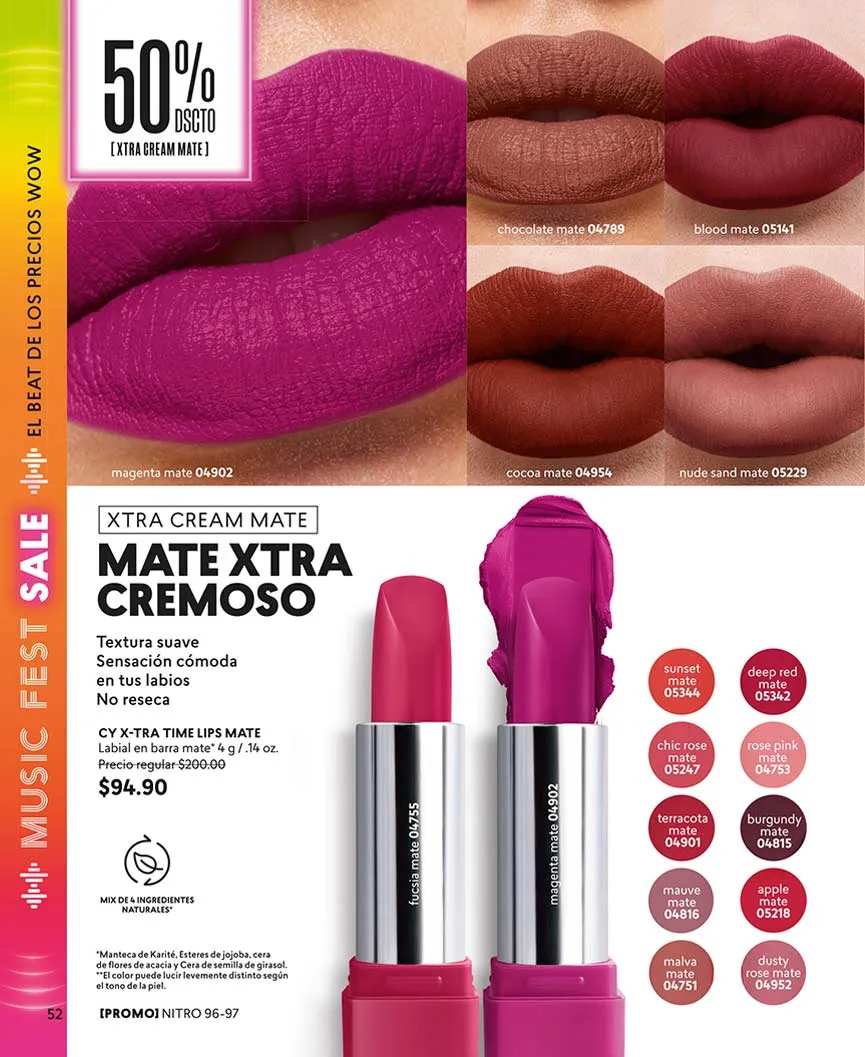 Dale un acabado mate a tus labios, con la oferta del labial «Cy X-Tra Time Lips» en cualquiera de sus tonalidades. Si de ofertas se trata, «Cy Crayon Lips» lo puedes llevar con 50% de descuento.