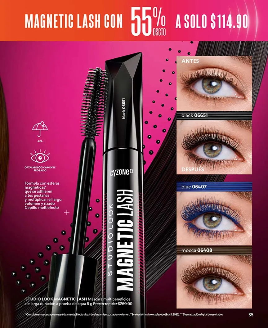 Complementa tu juego de maquillaje con «Cy Secret Lash», máscara gel invisible a mitad de precio. También puedes elegir tu set de máscara + delineador en la opciones de Set “Extreme” o Set “Studio Look” en este Cyzone campaña 5 2026 México.