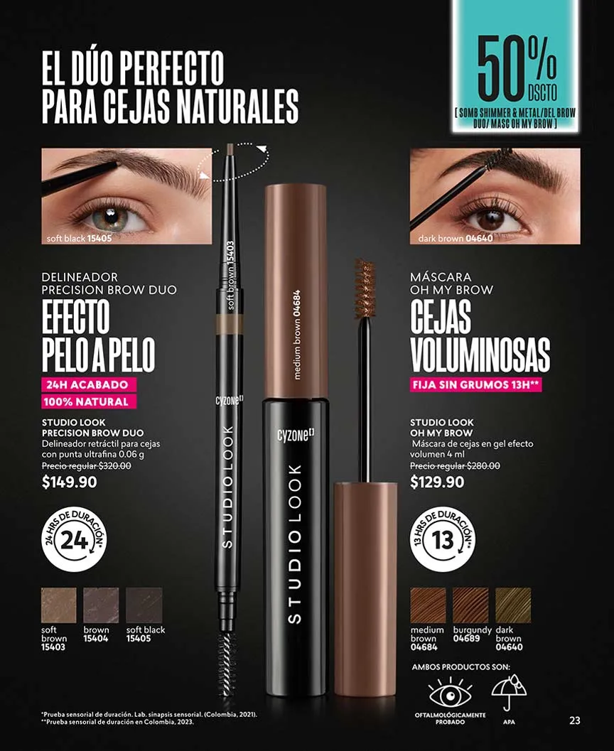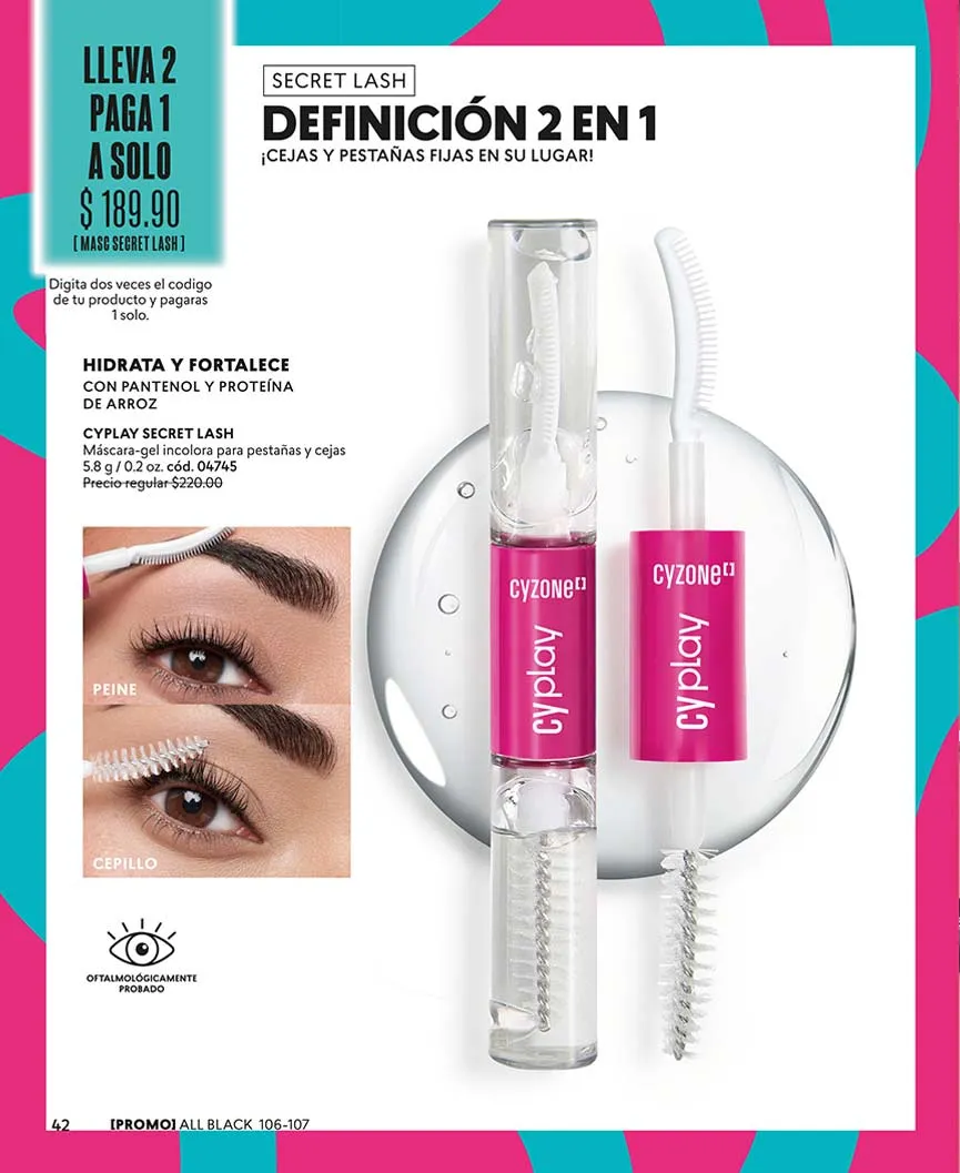 Dale un efecto 3D a tus pestañas, con la fórmula en gel y cepillo que define cada pestaña, con el “Cy on My Brow” exclusivo de catálogo Cyzone campaña 6 México 2026.