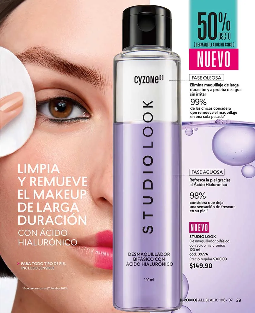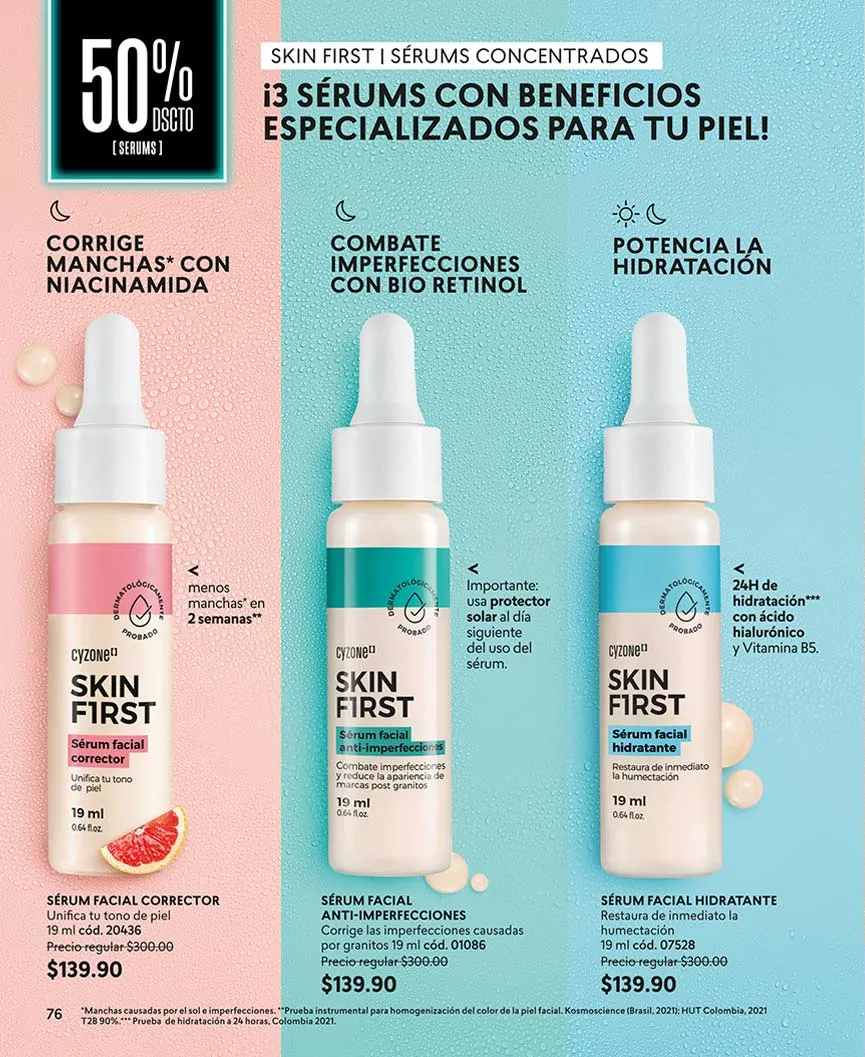Y para cuidar tu piel, lleva con 50% de descuento el agua micelar bifásica de “Skin F1rst”. Los mejores accesorios, billeteras, carteras y mochilas con 25% de descuento, solo en Cyzone, tu catálogo de altura y calidad.
