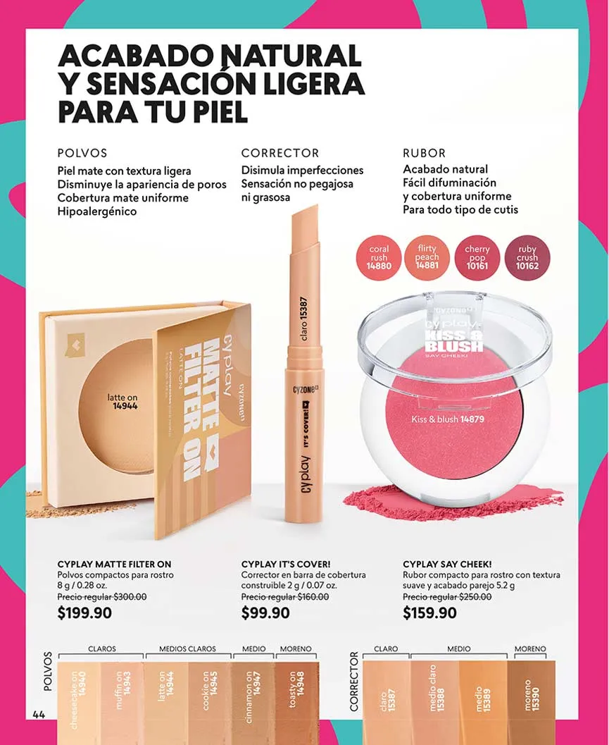 Brindale un maquillaje perfecto a tu rostro para tenerlo iluminado, corregido y emparejado, con el set completo del rubor “Cy Glow”, el Corrector “Cy Cover It” y el polvo compacto “Cy Ready To Go.”.
