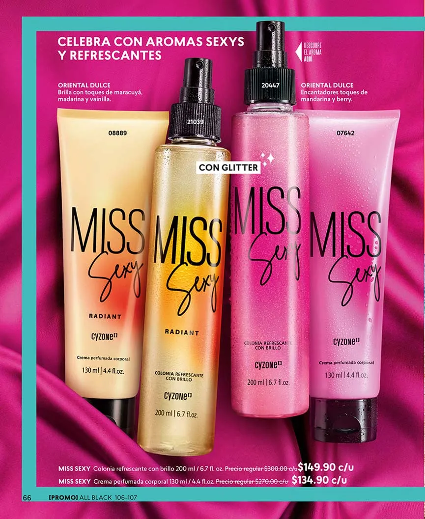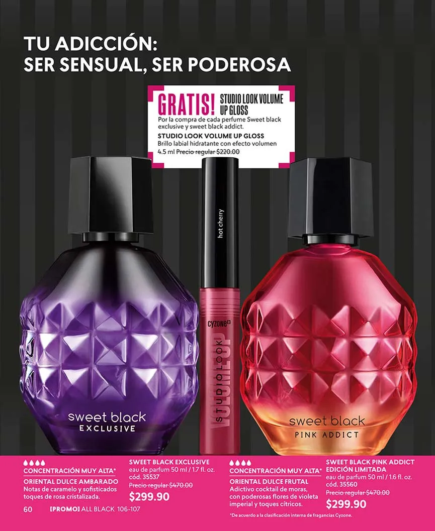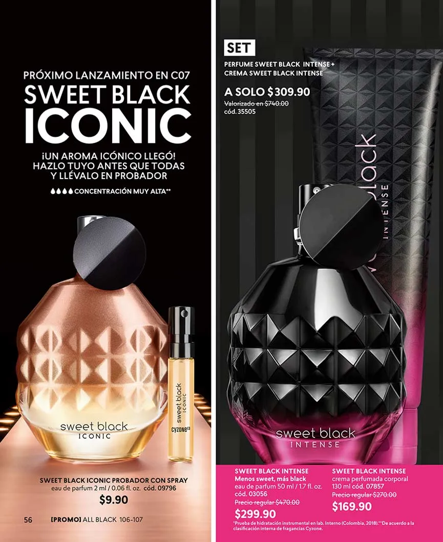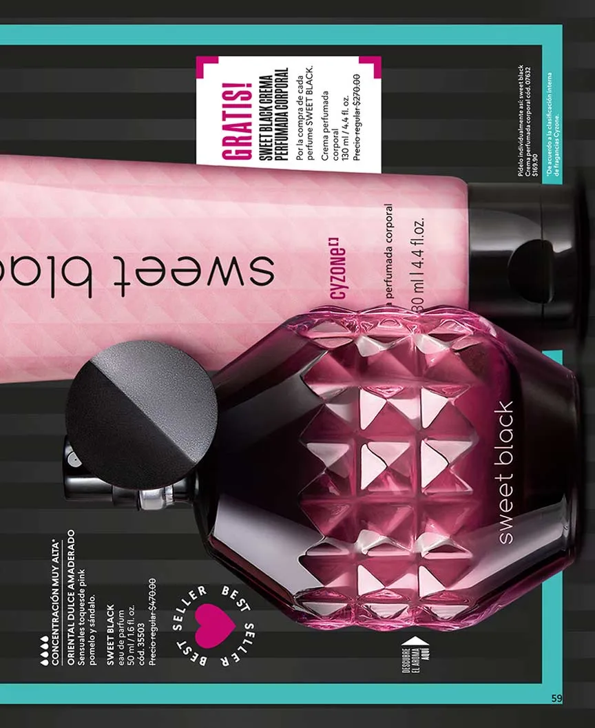 Las fragancias también están presentes en este catálogo, escoge entre el Set “Sweet Black” 1 ó 2, con una bolsa de regalo para esa persona especial.