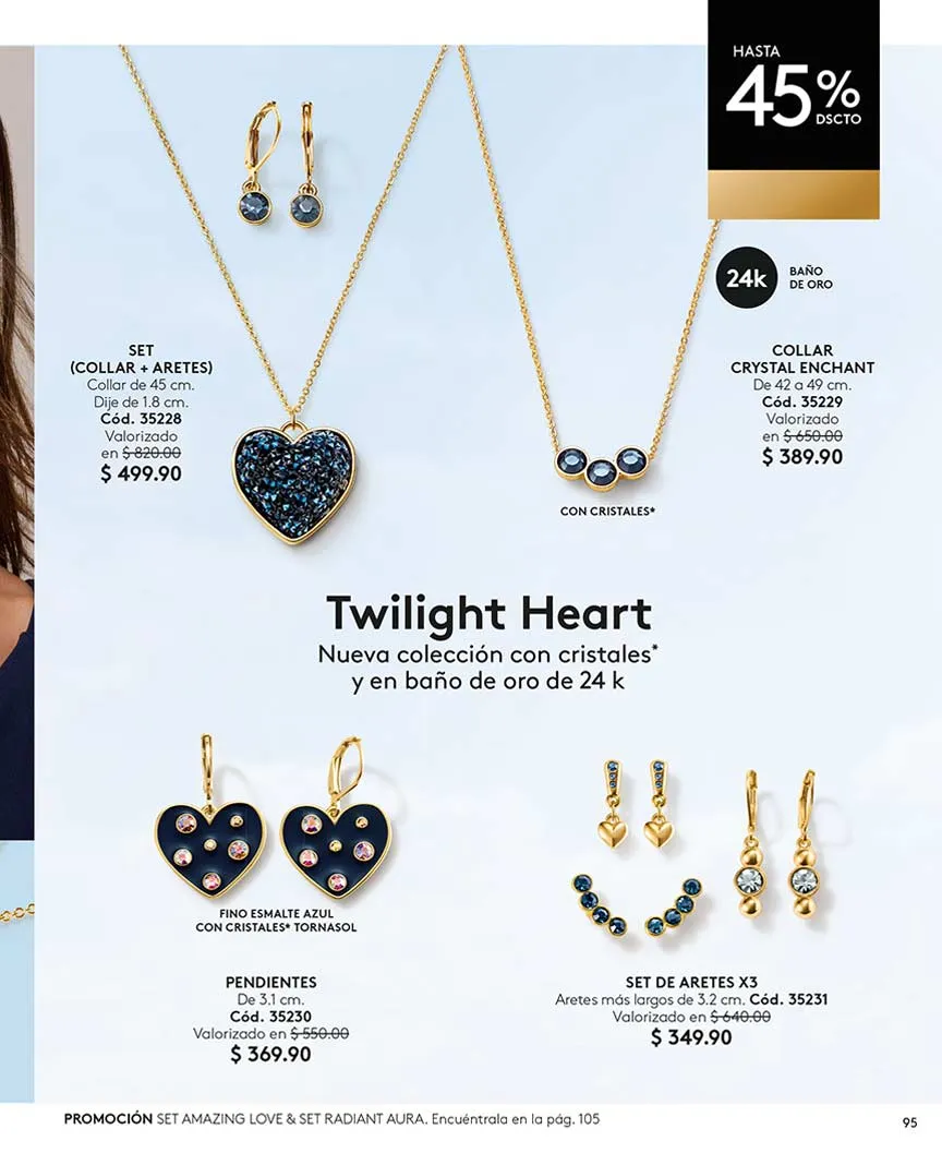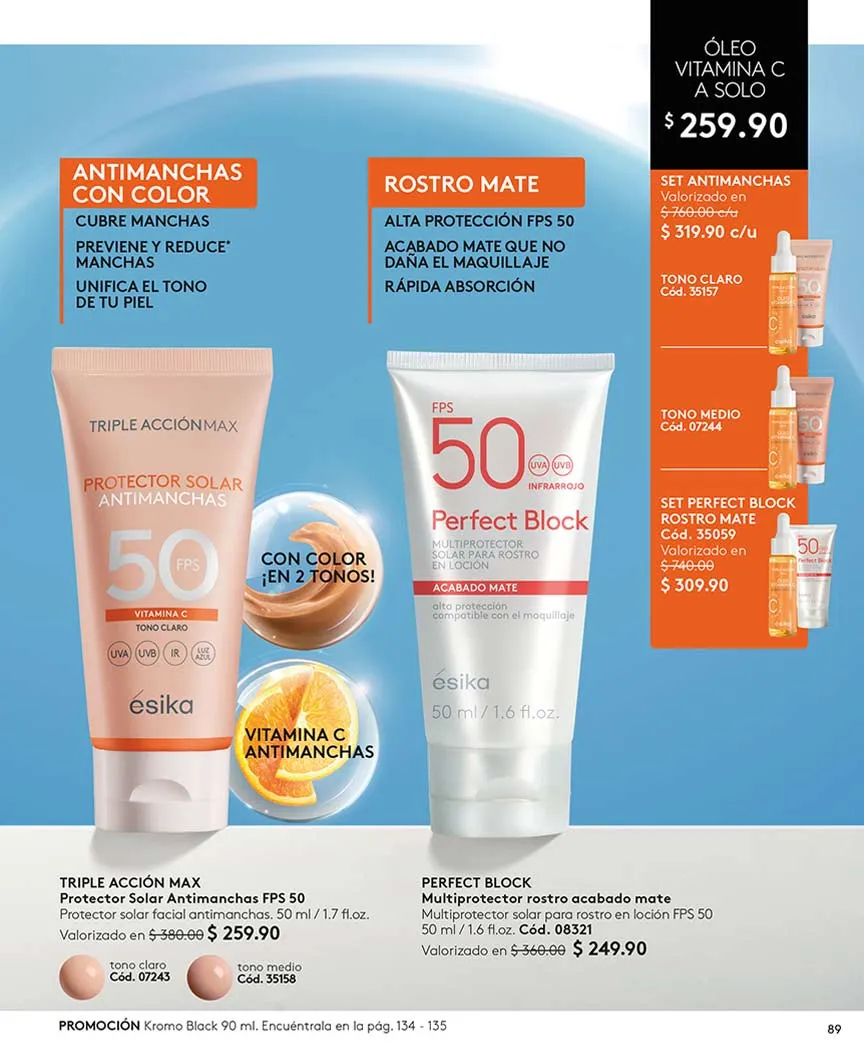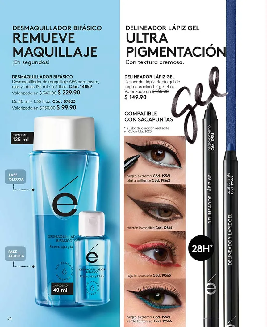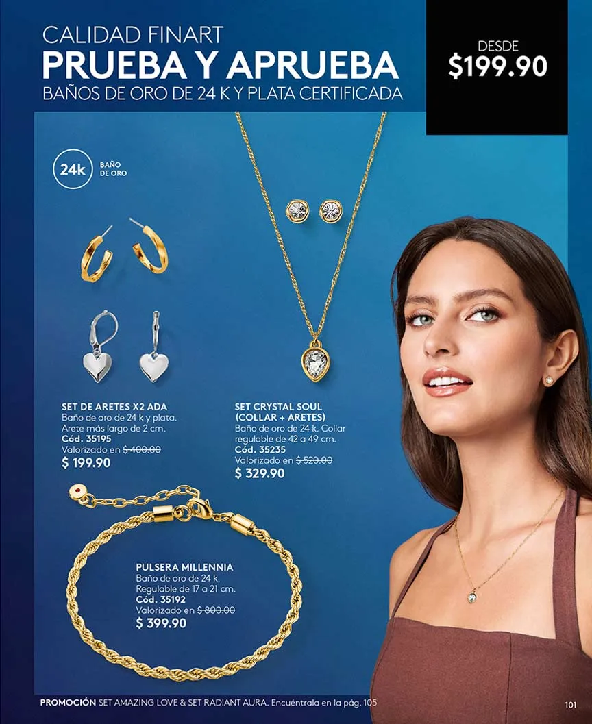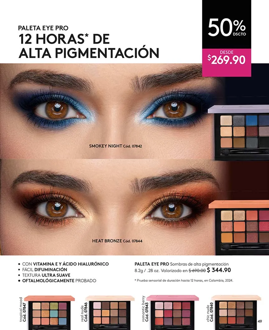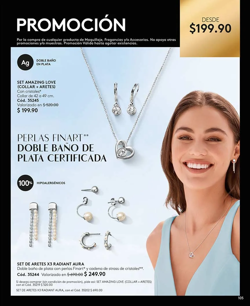 En promoción, puedes obtener 12 tonalidades en sombras con la paleta “Eye Pro” a un precio especial. ¡Cuida tu piel!, con la línea “Oxygen Supreme” puedes obtener el limpiador, exfoliante, concentrado de firmeza y antiedad, con 50% de descuento. Tenemos grandes opciones para tratamientos de la piel, la línea “Triple Action Max”, con Ácido Hialurónico y colágeno. Regálate un detalle, y para ello los zarcillos, collares, lentes, relojes y carteras, tienen cada vez modelos nuevos y de calidad.