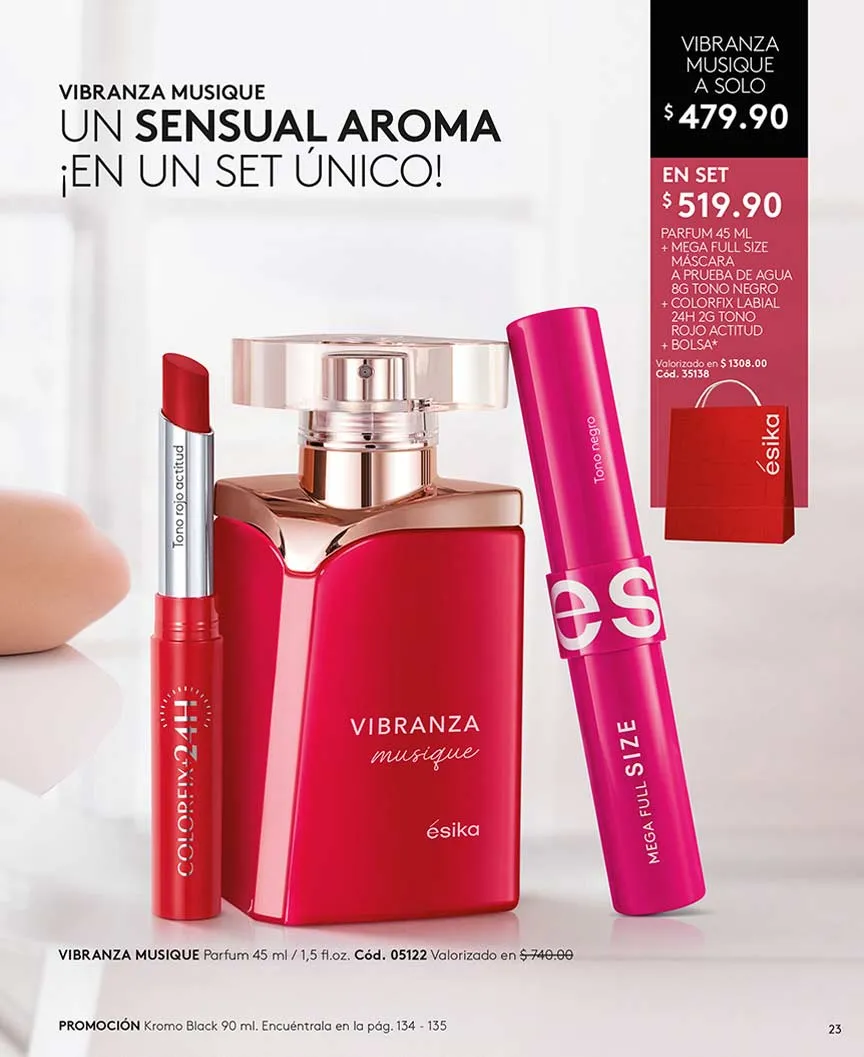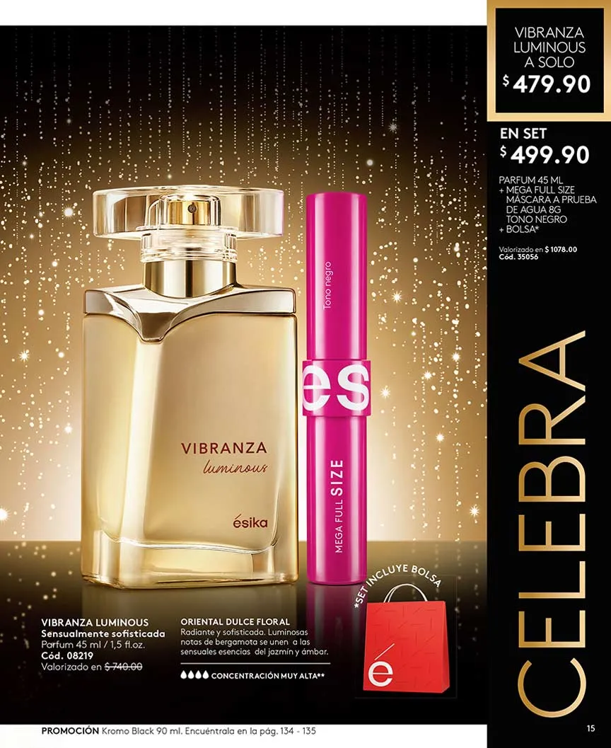Si amas “Vibranza Blanc” combínala con la nueva loción perfumada que hace juego, a mitad de precio. O escoge entre los sets “Vivir”, “Mía”, “Bela”o “Vibranza” combinada con los mejores productos, al mejor precio. “Iluminas Prismatic” para que brilles como nadie con este aroma frutal, o “Femme Magnat” de concentración muy alta, a mitad de precio.
