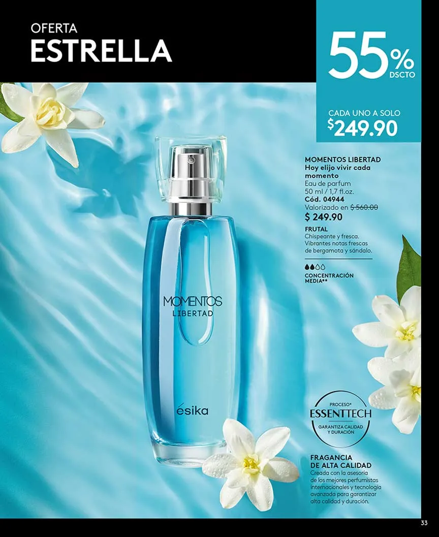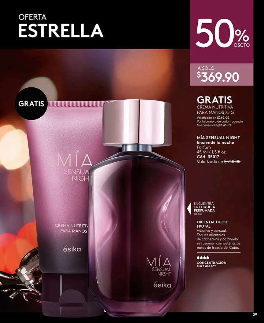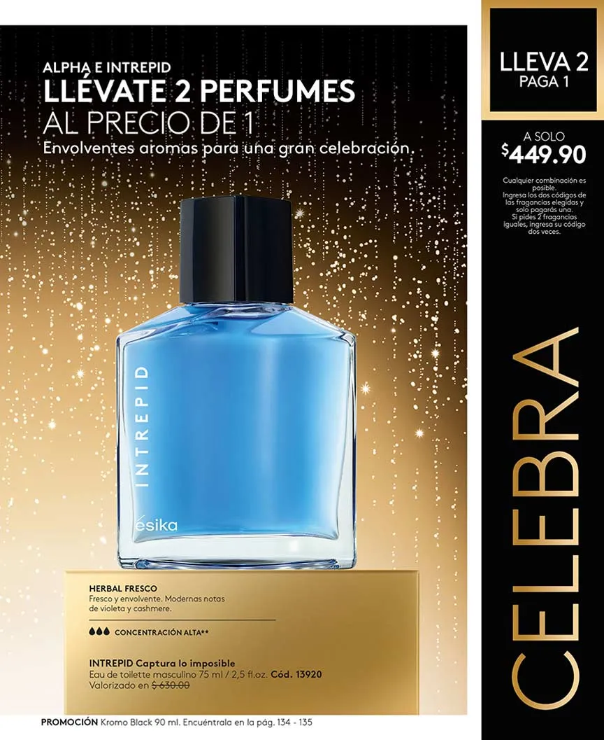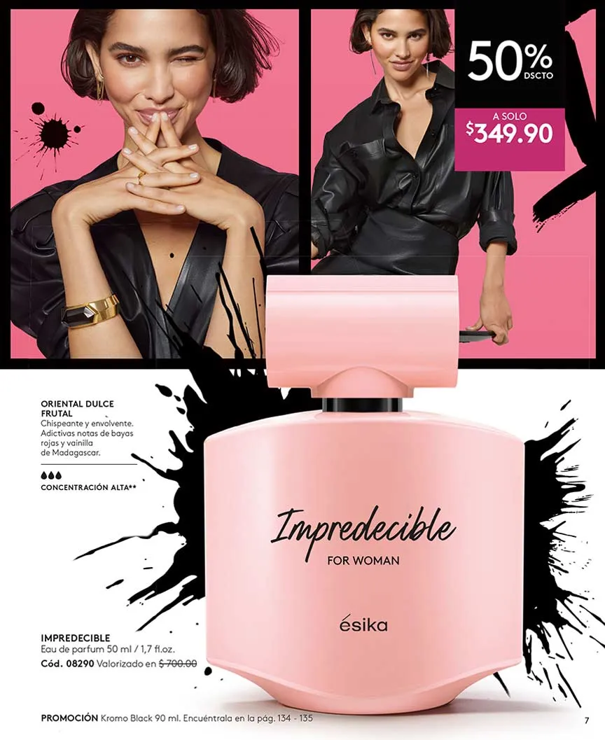 “Impredecible” es la fragancia que catálogo Ésika campaña 1 2026 México te presenta en promoción con 3 opciones para escoger, acompáñalo con la fragancia perfumada, máscara + labial o con el bello Bolso “Gina” a un precio promocional.