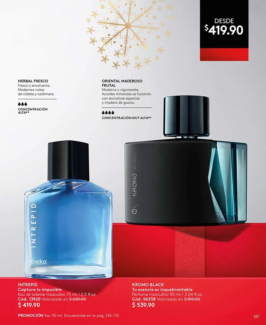 Y para los caballeros también hay productos especiales para regalar: Kromo Black a un 55% de descuento, el set Magnat con el perfume de 90 ml y la de 10 ml, más el desodorante y la colonia Men Active o el perfume Uno a un 50% off.