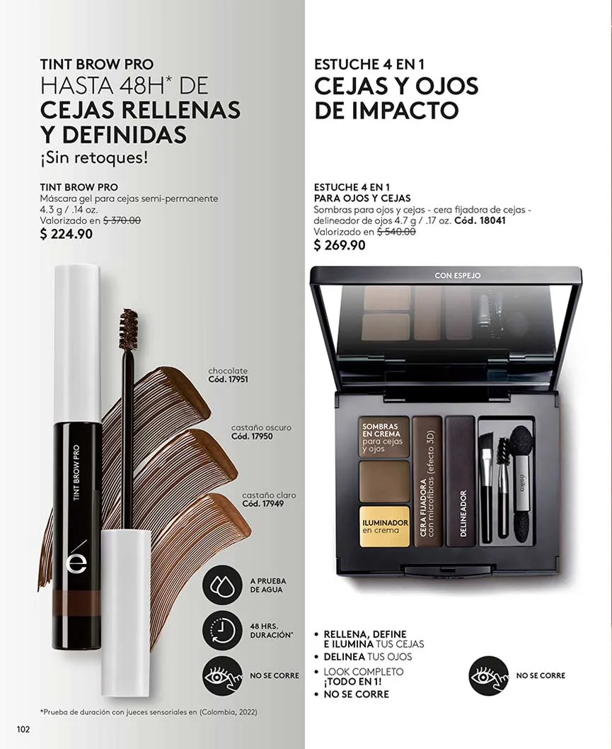 Para darle color a tu mirada, tienes en oferta la paleta «Eye Pro», sombras de alta pigmentación que puedes complementar con la brocha dual para ojos. También puedes aprovechar el estuche 4 en 1 para ojos y cejas, a mitad de precio. Bríndale hasta 7 días de color y cuidado a tus manos, con los esmaltes «Smart Color» en hermosos colores disponibles.
