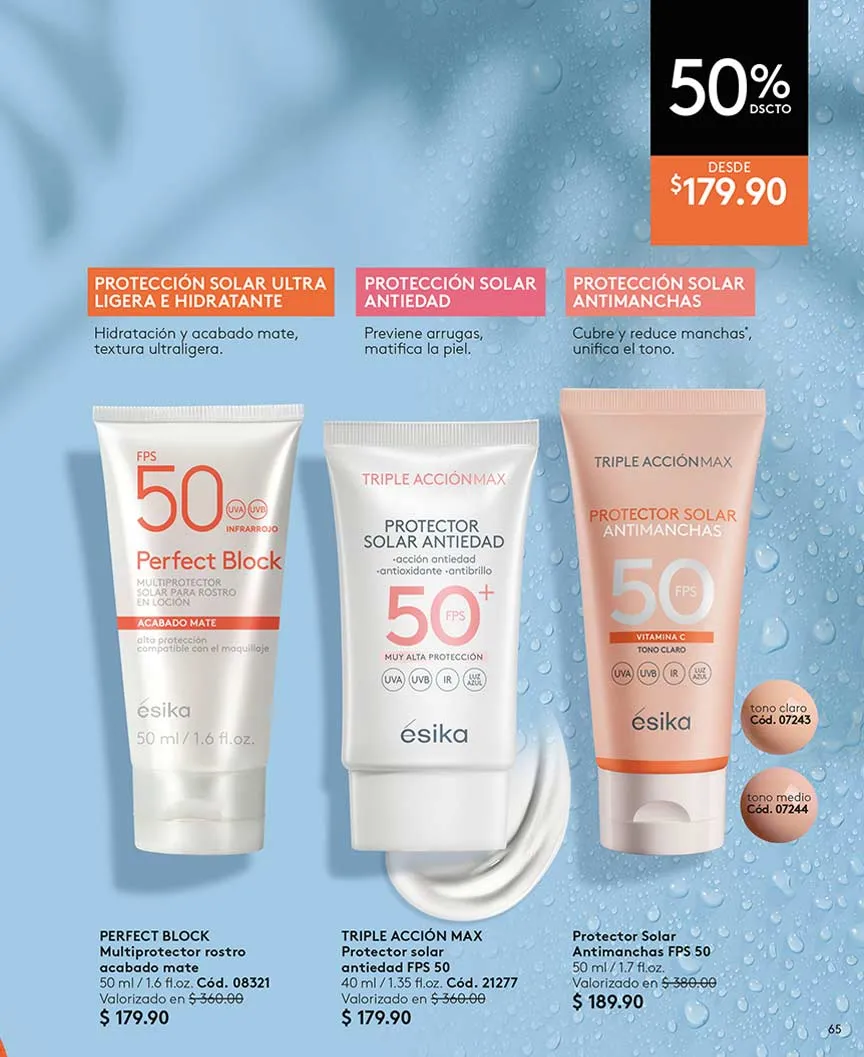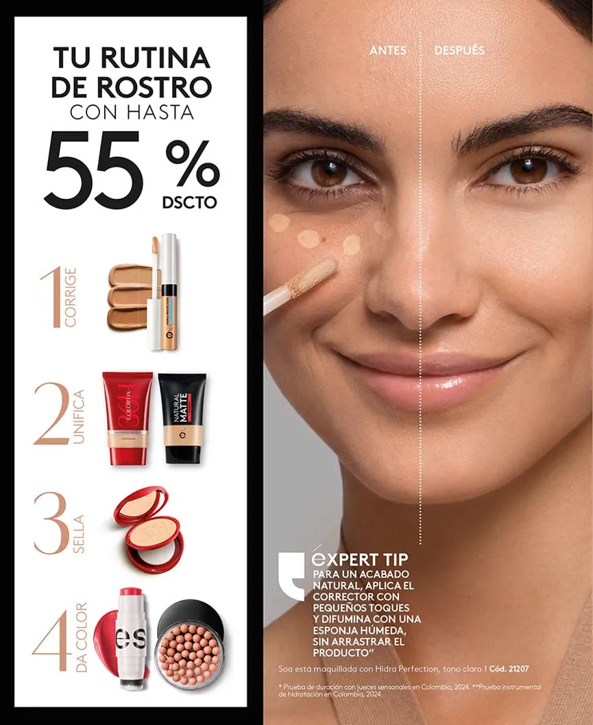 Hidrata y cubre tu rostro con la base «Hidra Smart» o «Hidra Perfection» con 50% de descuento. Para un efecto bronceado, las «Perlas Broze» son tu mejor opción. ¿Pensando en los mejores tratamientos antiedad?, con la línea diurna y nocturna de «Oxygen Supreme» tienes la oportunidad de llevarte el producto que quieres a mitad de precio.