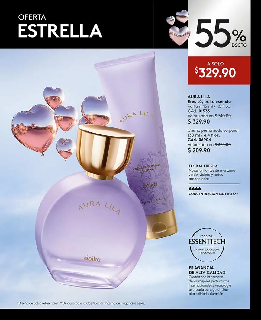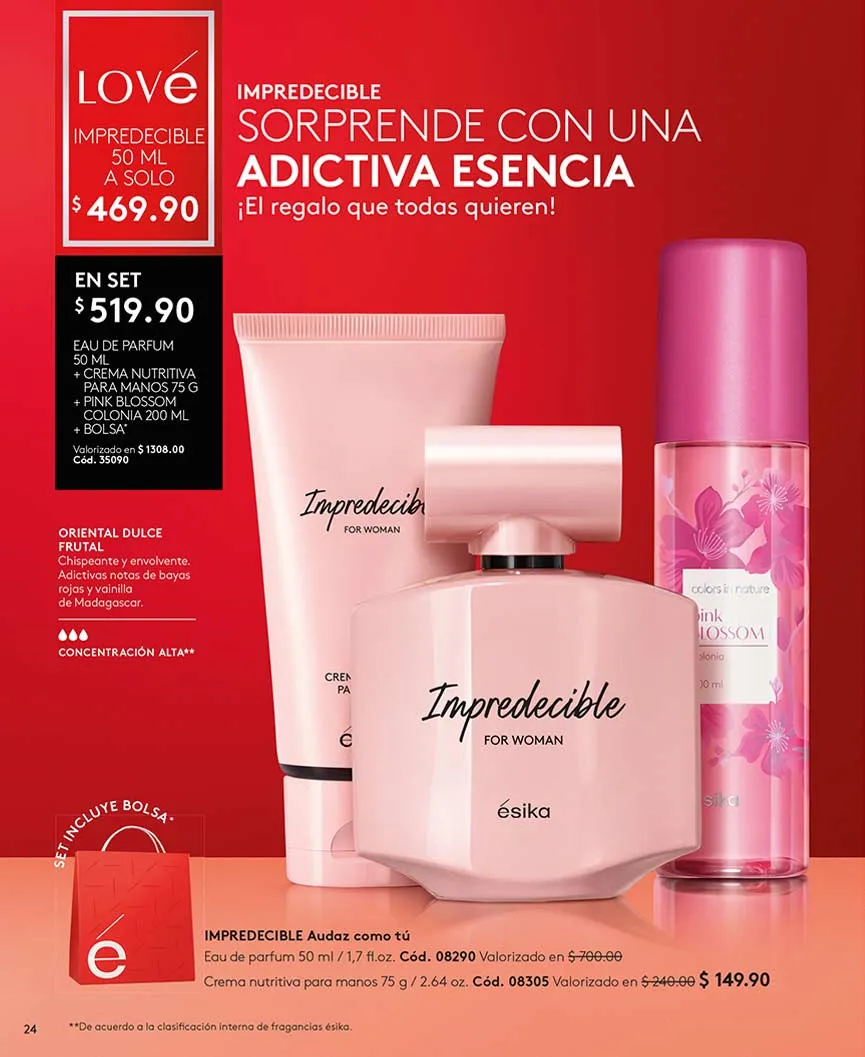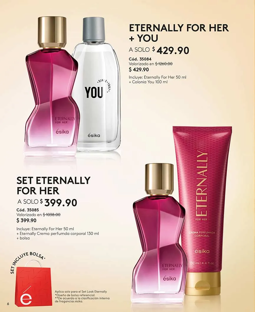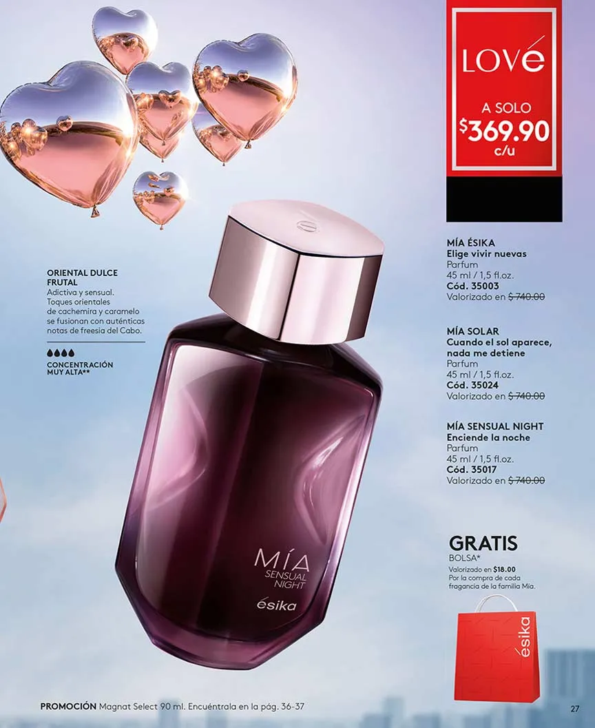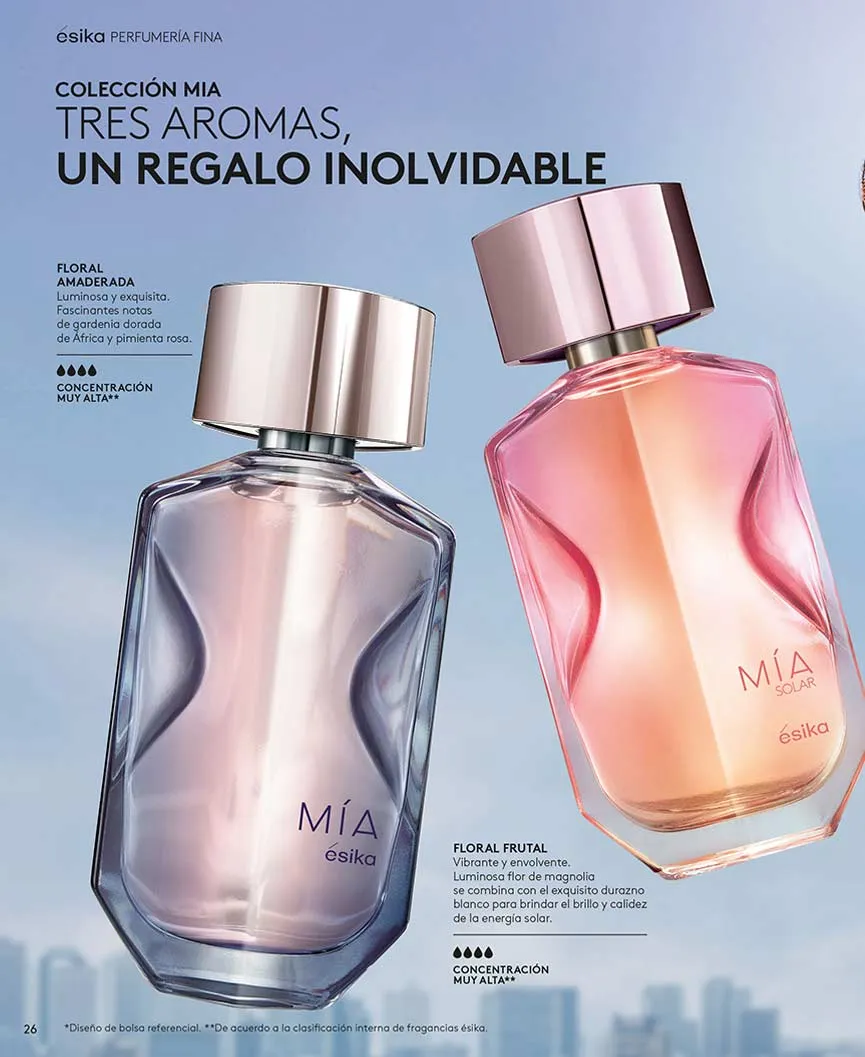 Ésika es sensualidad, y en este catálogo Ésika campaña 3 2026 México está de fiesta con el lanzamiento de «Mía», un aroma oriental dulce que puedes llevar solo, o en set. Además, llevando «Mia» puedes obtener en promoción el reloj «She Loved». Un regalo 5 estrellas es el Set «Bela», con loción perfumada y bolsa de regalo.