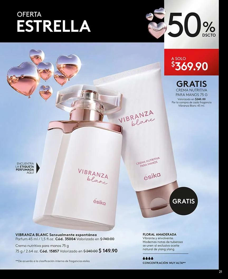 «Irresistible Blanc» es la oferta estrella a mitad de precio. Para celebrar el amor, «Alma», acompañada de un set que lo tiene todo, o con «Valentía» puedes encontrar el regalo ideal. «Vivir», «Femme Magnat», «Iluminas Prismatic», la línea «Vanilla Scent» o la línea «Expressions Sens», son solo algunas de las fragancias que también encontrarás en promoción.