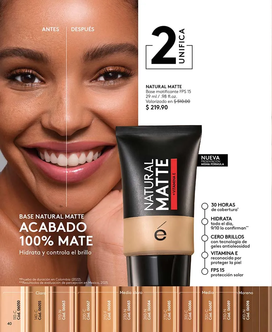 Con efecto mate y sin brillo, puedes llevarte a mitad de precio “Natural Mate”; si prefieres el efecto de bronceado, las “Perlas Bronze” puedes llevarlas con la compra de cualquier producto de maquillaje de esta Campaña 04 2026 de Ésika.
