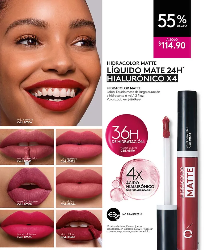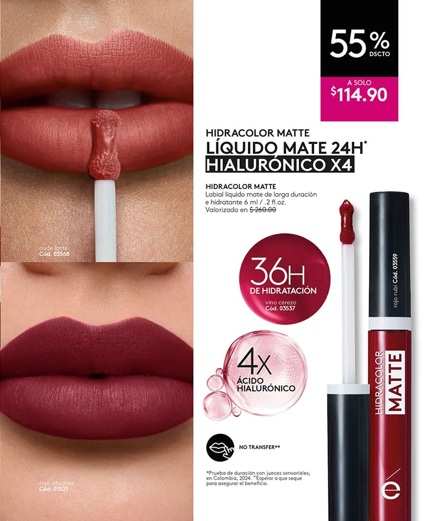 Para tus labios, también hay ofertas. El labial “Hidracolor” te ofrece 16 horas de duración y cero transferencia, a un precio súper especial.
