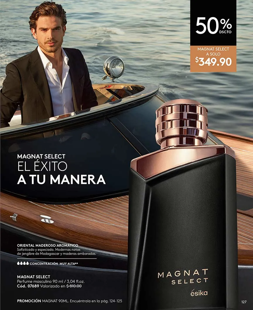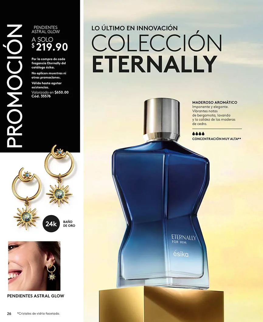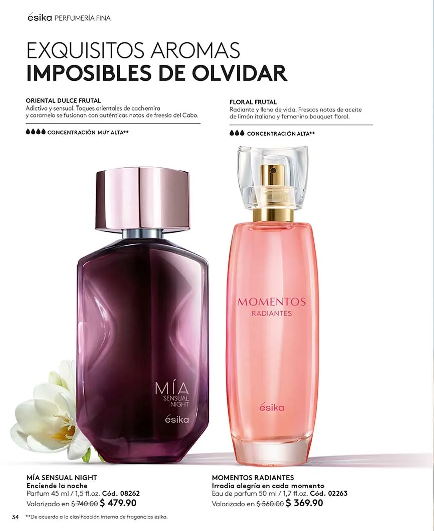 Prueba “Mía Sensual Night”, una combinación de aromas dulces orientales a precio de lanzamiento. “Femme Magnat” está en la Oferta Estrella, con 50% de descuento, al igual que la línea de perfumes “Expression”. Si de tratamientos antiedad se trata, ésika lo tiene.