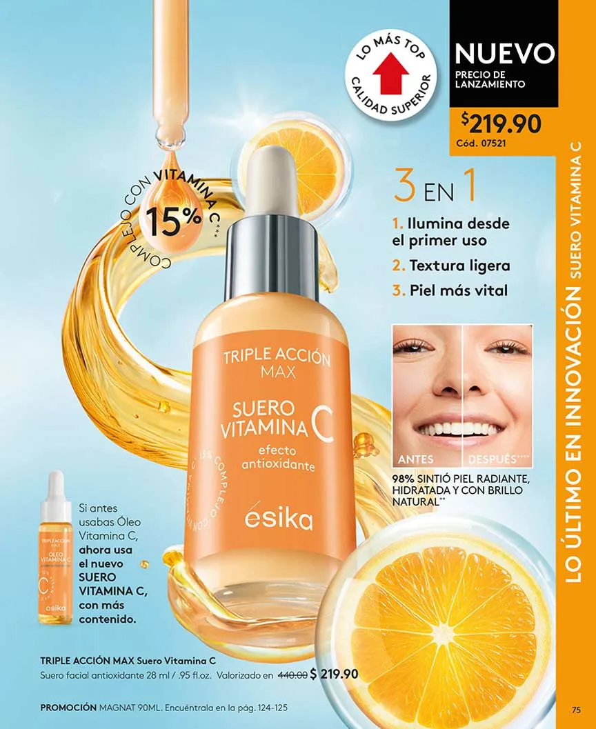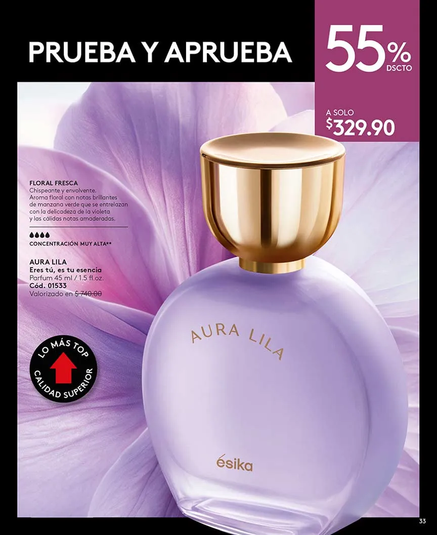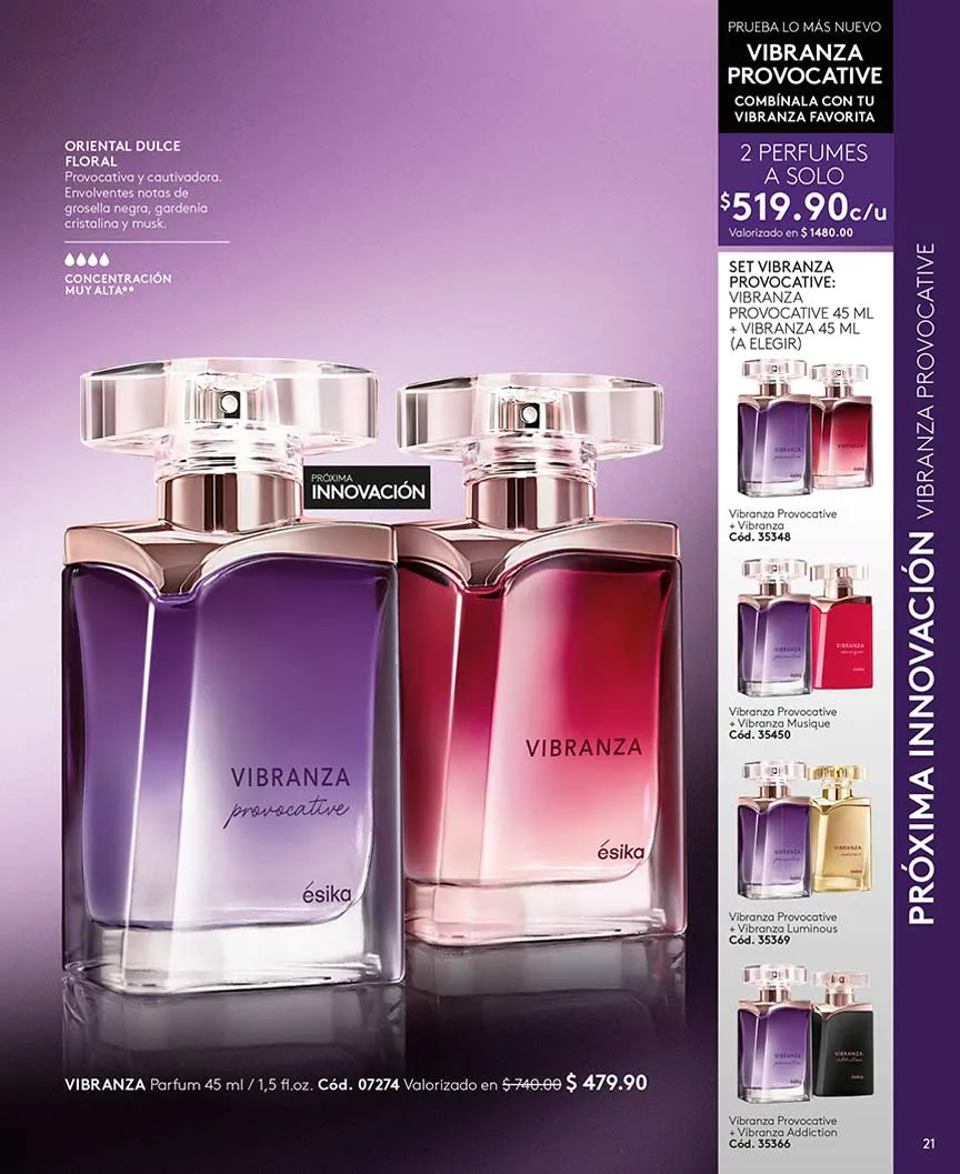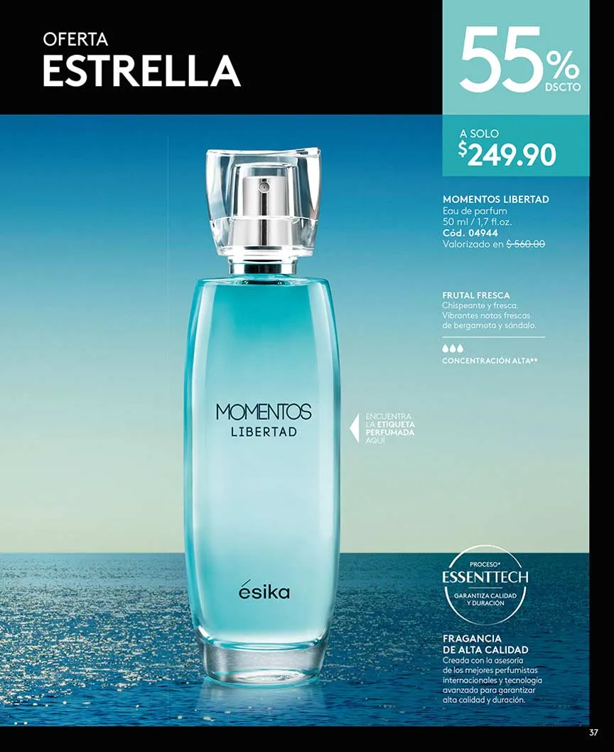 Prueba “Mía Sensual Night”, una combinación de aromas dulces orientales a precio de lanzamiento. “Femme Magnat” está en la Oferta Estrella, con 50% de descuento, al igual que la línea de perfumes “Expression”. Si de tratamientos antiedad se trata, ésika lo tiene.