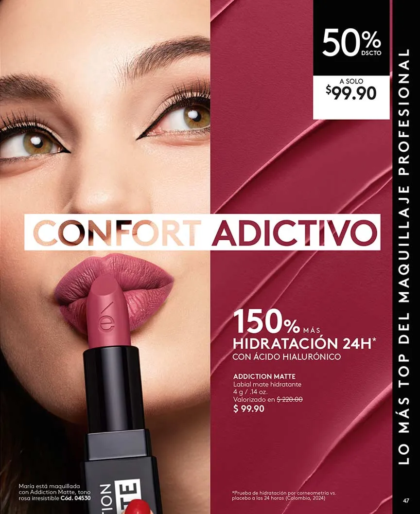 “Hidracolor” labial líquido, te presenta sus 3 tonos nuevos para darle un efecto mate a tus besos, compleméntalo con el neceser “Ana”, elaborado en PVC con 2 comportamientos principales y cierres, que le dan un toque chic a tu maquillaje.