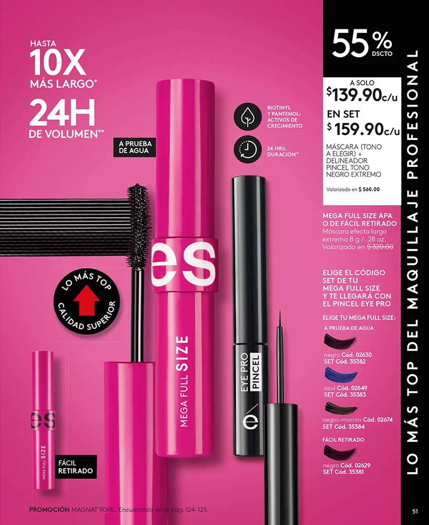 El catálogo Ésika campaña 5 2026 México te da la opción de llevarte una máscara “Mega Full” a prueba de agua + Plumón “Eye Pro”, para brindar un largo insuperable, en este set promocional.