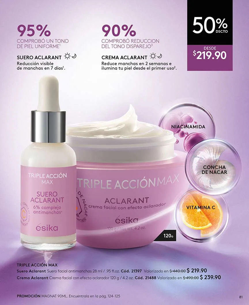 La línea “Triple Acción Max” con ácido hialurónico y colágeno la tienes con 50% de descuento.