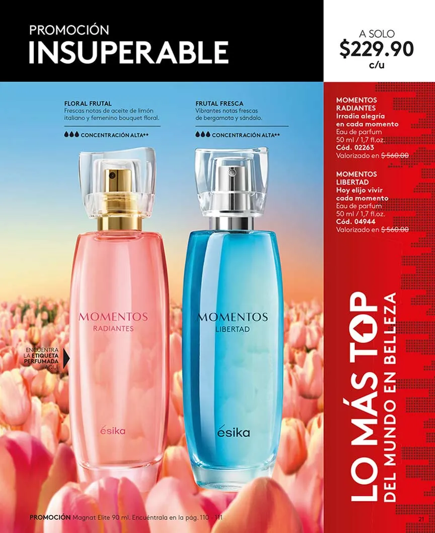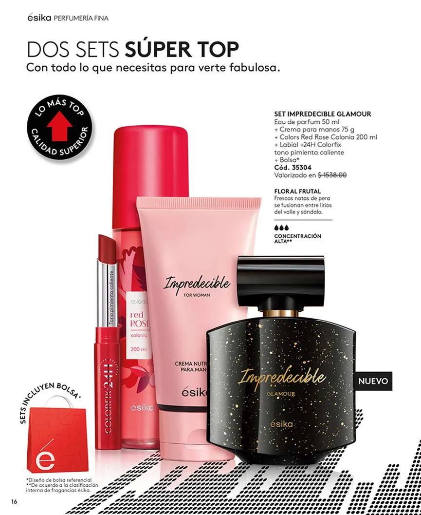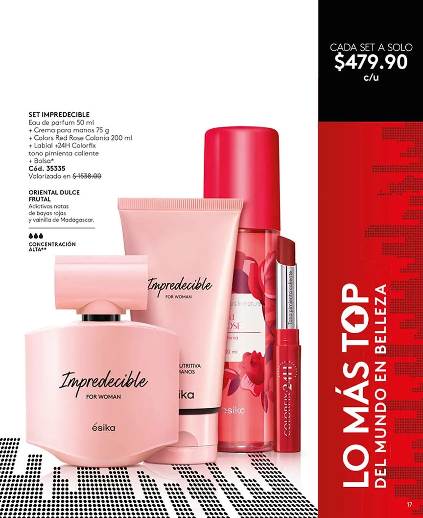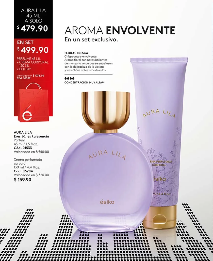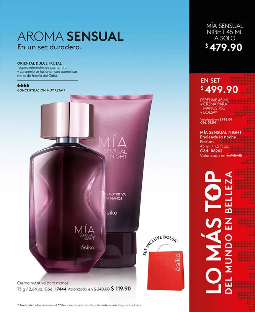 Entre otros sets de perfumes disponibles, se encuentran «Mia», «Mia Sensual Night, «Vivir», combinados con los mejores productos en esta campaña 06 de Ésika.