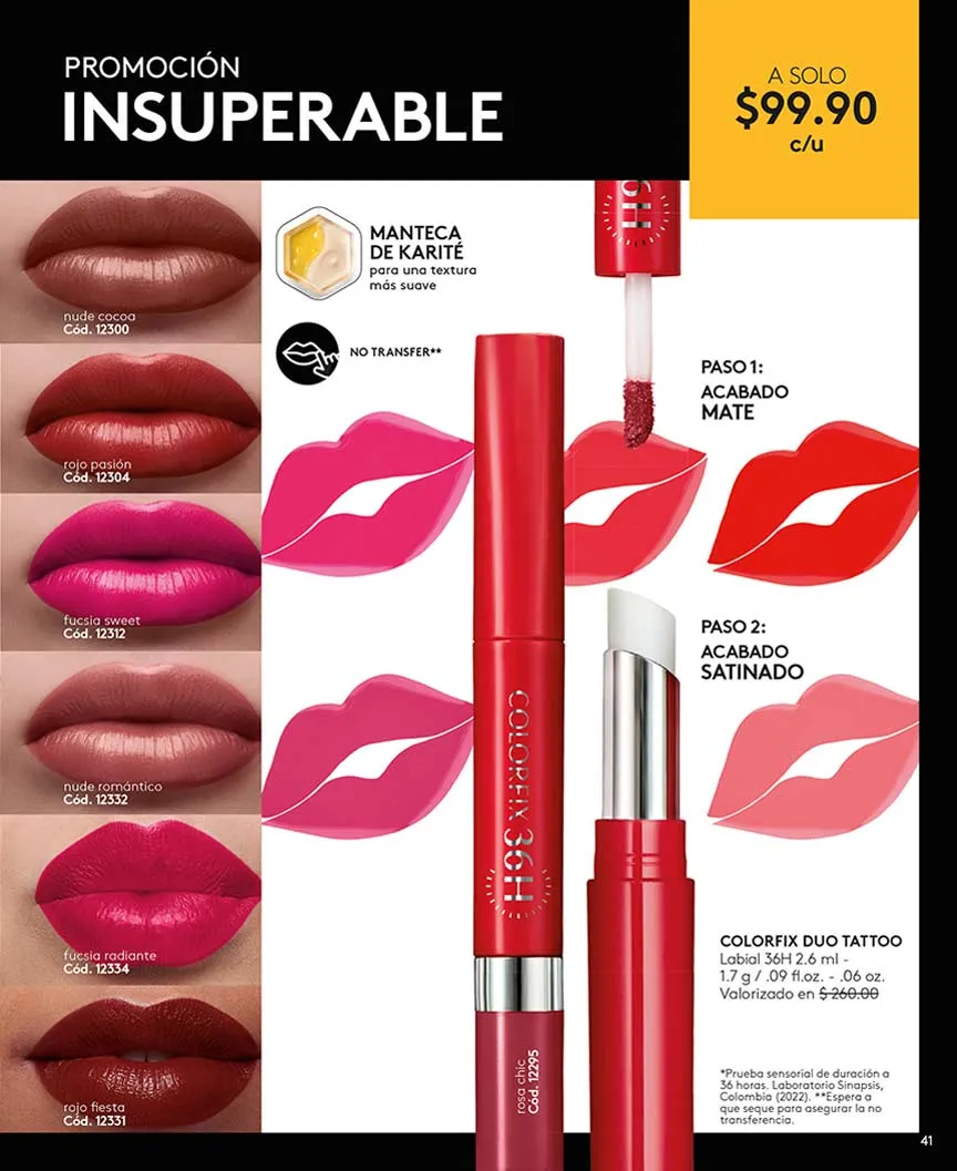Para un combo completo, ésika te da la oportunidad de llevar «Colorfix» labial + delineador plumón + máscara «Mega Full» + pulpa para manos, escogiendo entre los perfumes «Alma» o «Impredecible».