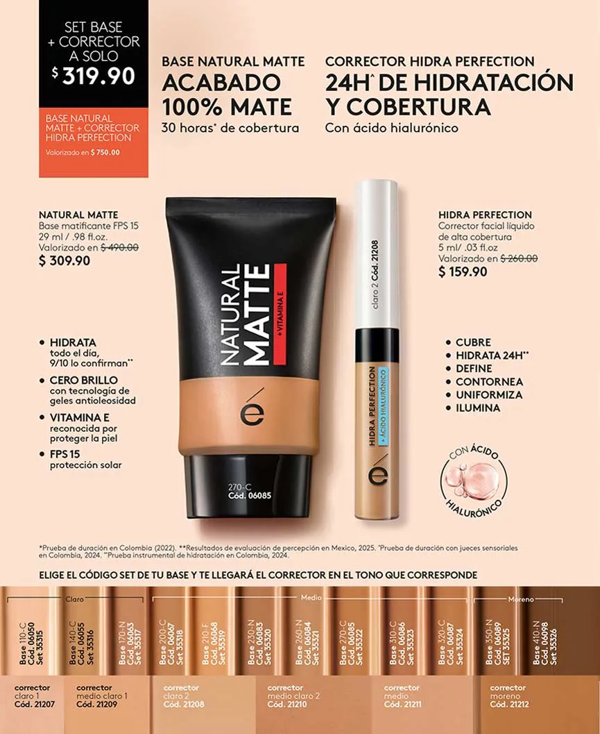 En esta campaña también puedes llevar el corrector facial + el Hidra Perfection, a mitad de precio. Si de ojos se trata, el Estuche 4 en 1 para ojos y cejas, lo encuentras a precio de promoción. Pero si te inclinas más por los tratamientos para producir ácido hialurónico, tanto para el día como la noche, el Set «Detox» cuenta con limpiadora, hidratante, exfoliante y bolsa de regalo en este catálogo Ésika campaña 6 2025.