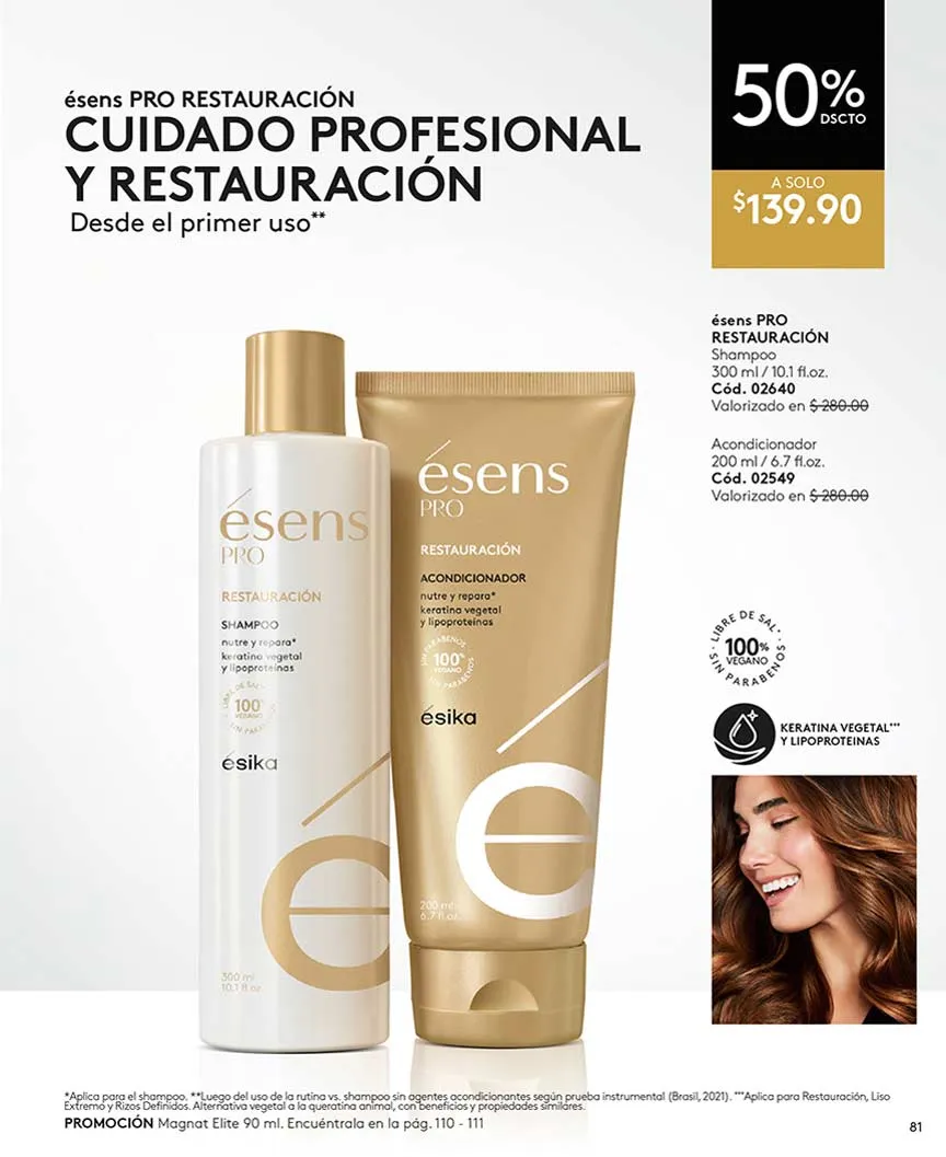 Dale a tu cabello productos efectivos, con el Set «Pro» con Shampoo + Acondicionador. Todos tus productos ésika favoritos están presentes en la catálogo Ésika campaña 6 2026 México. Ésika, siempre pensando en tu apariencia, salud y belleza.