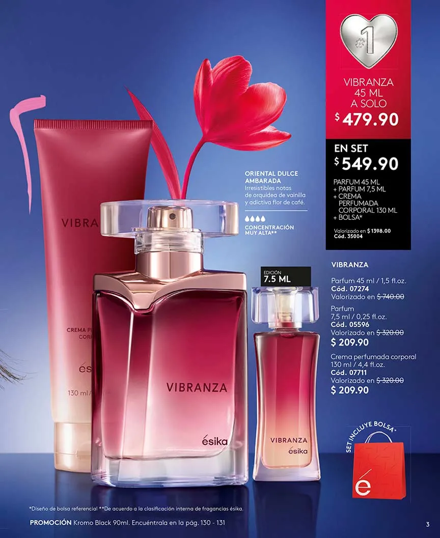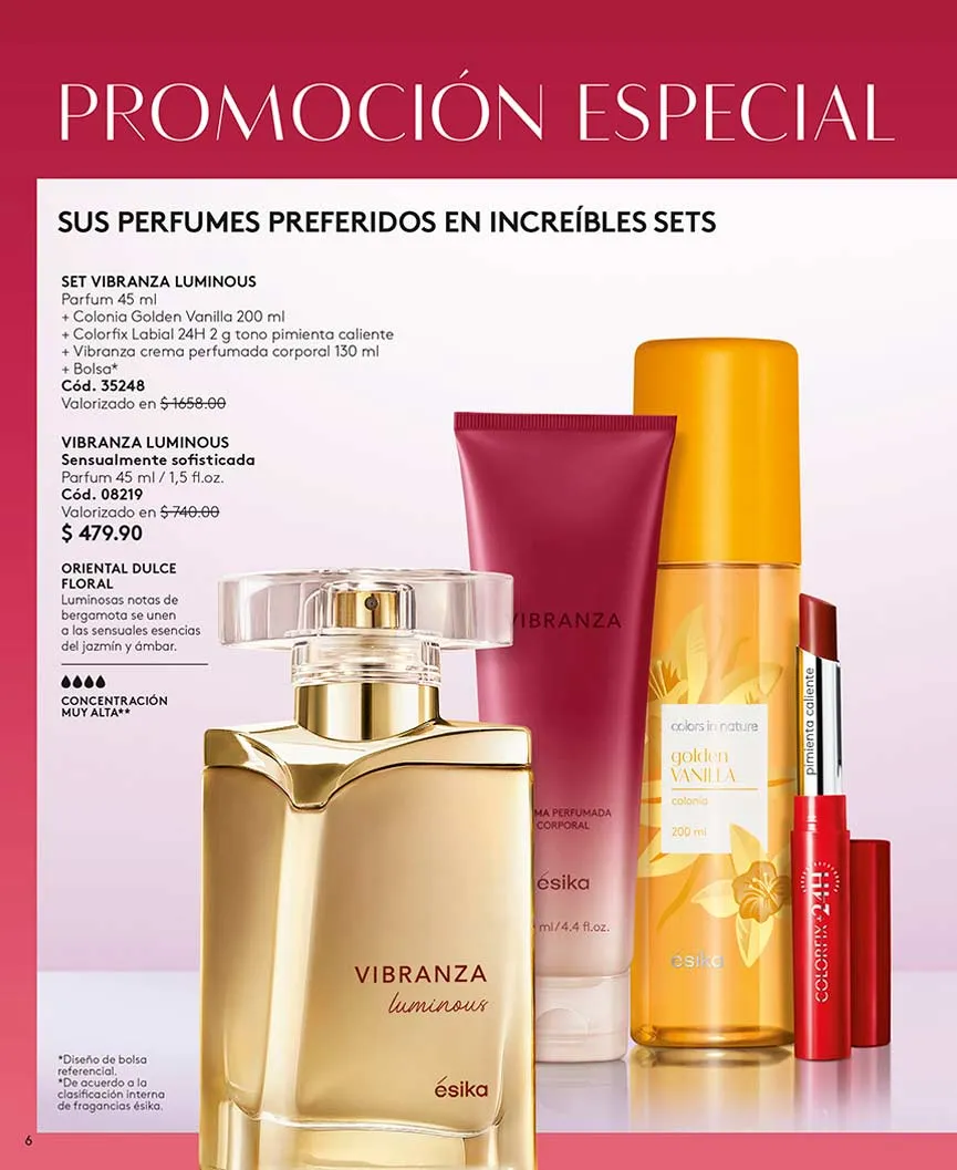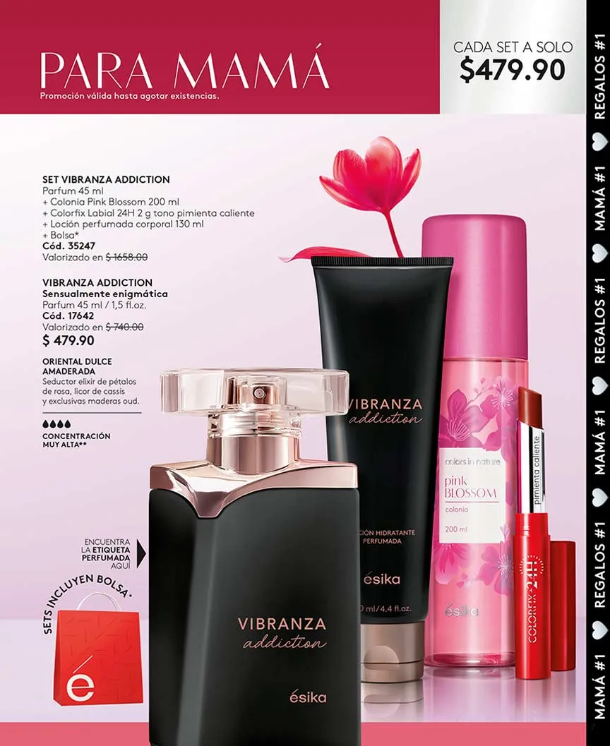 Y las fragancias siempre son la primera opción para un regalo ideal. Por eso, la catálogo Ésika campaña 7 2026 México ofrece los sets “Vibranza”, Vibranza Blac”, “Red Power”, “Mía”, “Bela”, “Impredecible”, “Expresion Sens” y muchos otros, en combinaciones con labiales, cremas perfumadas, máscaras y más, a un precio de regalo.