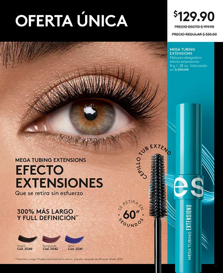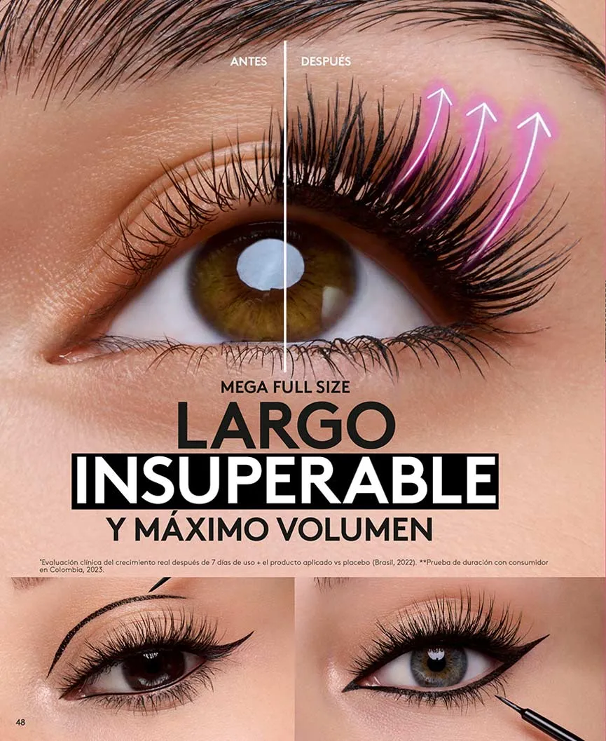 Disfruta de máscaras que te rizan o te brindan más volumen, a mitad de precio. Y para pestañas más negras, adquiere el “Ultra Black Volumen” y obtén un delineador completamente GRATIS.