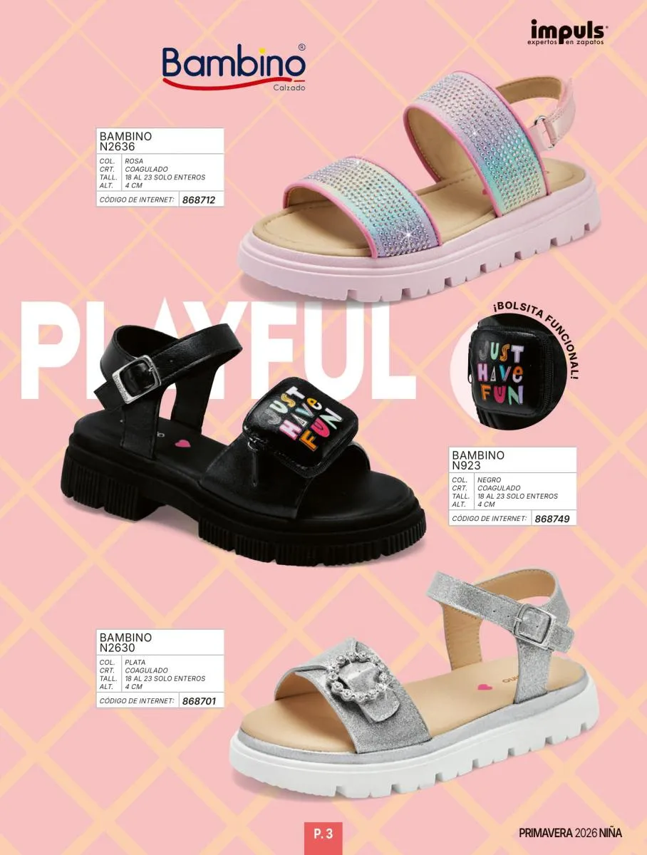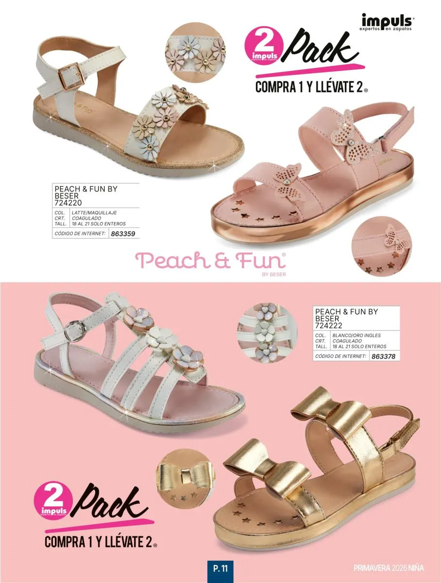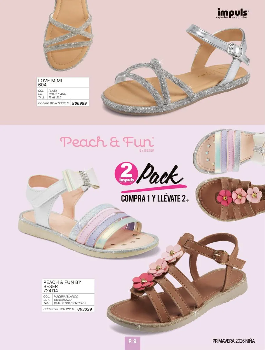 Ven y descubre todos los modelos que tenemos en este catálogo Impuls Niña primavera verano 2026 Mexico. Llévalo todo a precios tan adorables como cada zapatito que te mostramos para las princesas de la casa.