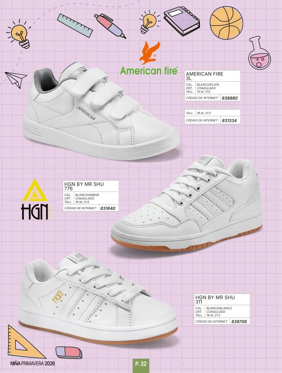 Las marcas infantiles son nuestra especialidad y con el calzado para niña no iba a ser menos. Pirma, Wilson, K-Swiss, Amrican Fire, HGN y muchos más que incluimos en esta catálogo Impuls Niña primavera verano 2026 Mexico están pensados para el deporte, el juego y la diversión, en su presentación en blanco resultan también perfecto para el cole.