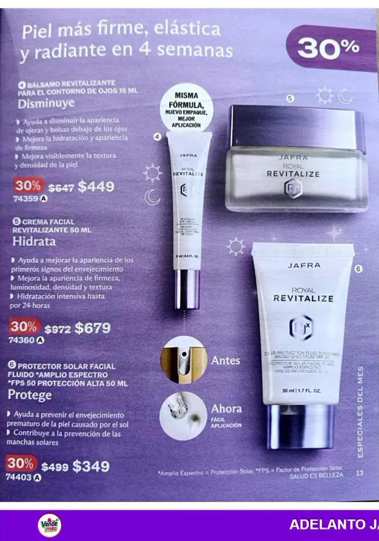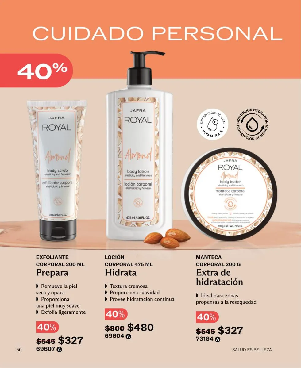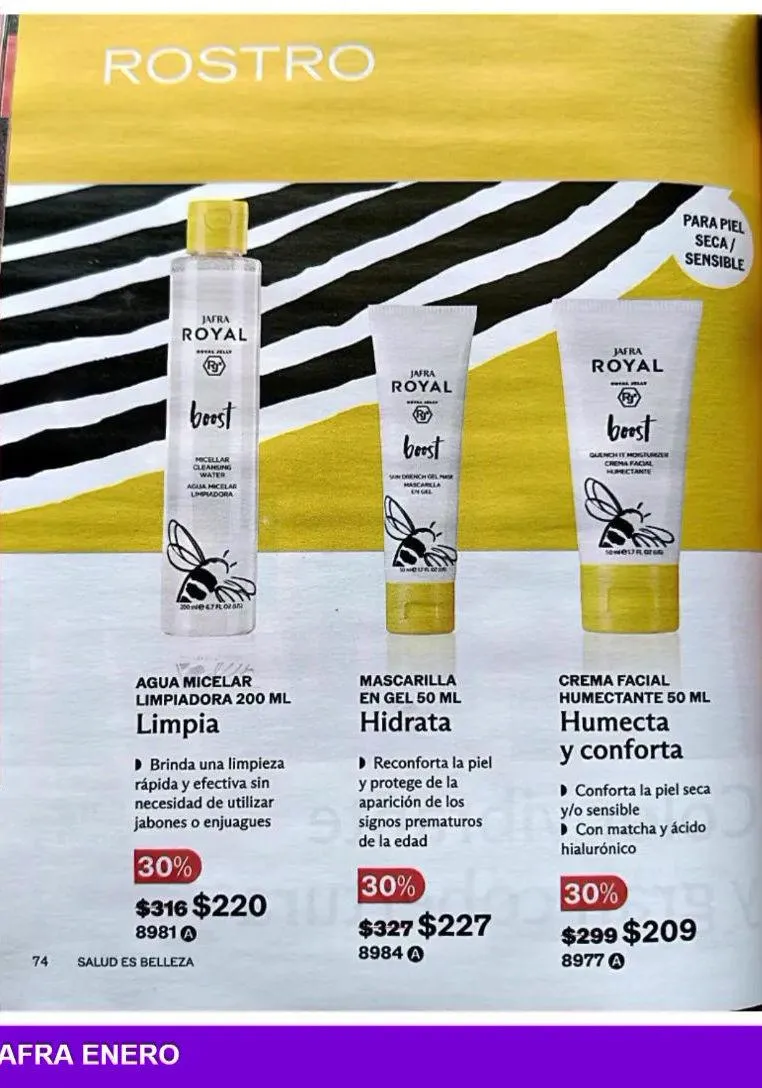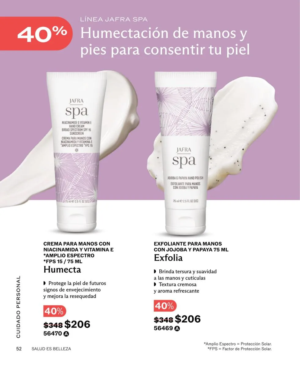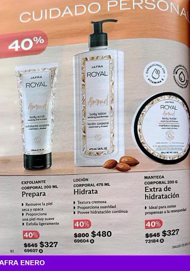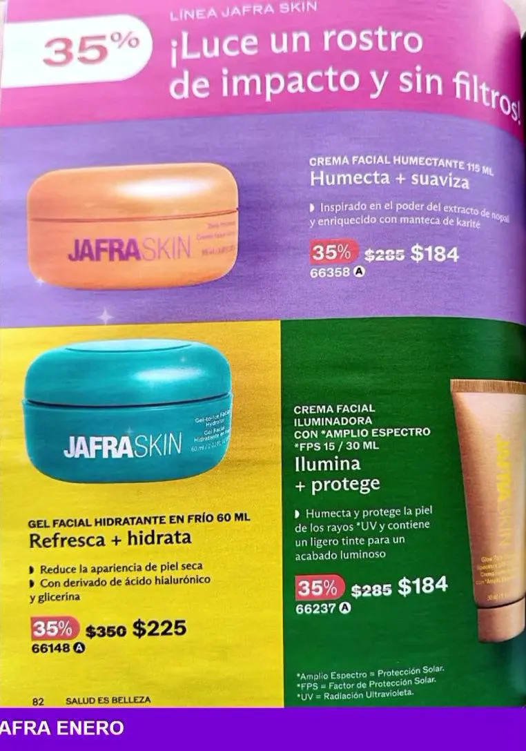 No más piel seca ni descuidada, todas las presentaciones de cremas corporales y para el rostro de Jafra en este catálogo 2026 para México son fanáticas. ¿Y los precios? Descuentos que te harán correr ya mismo a pedir tus Happy and Fresh o la loción Royal con esencia de jengibre a un 40% de descuento.