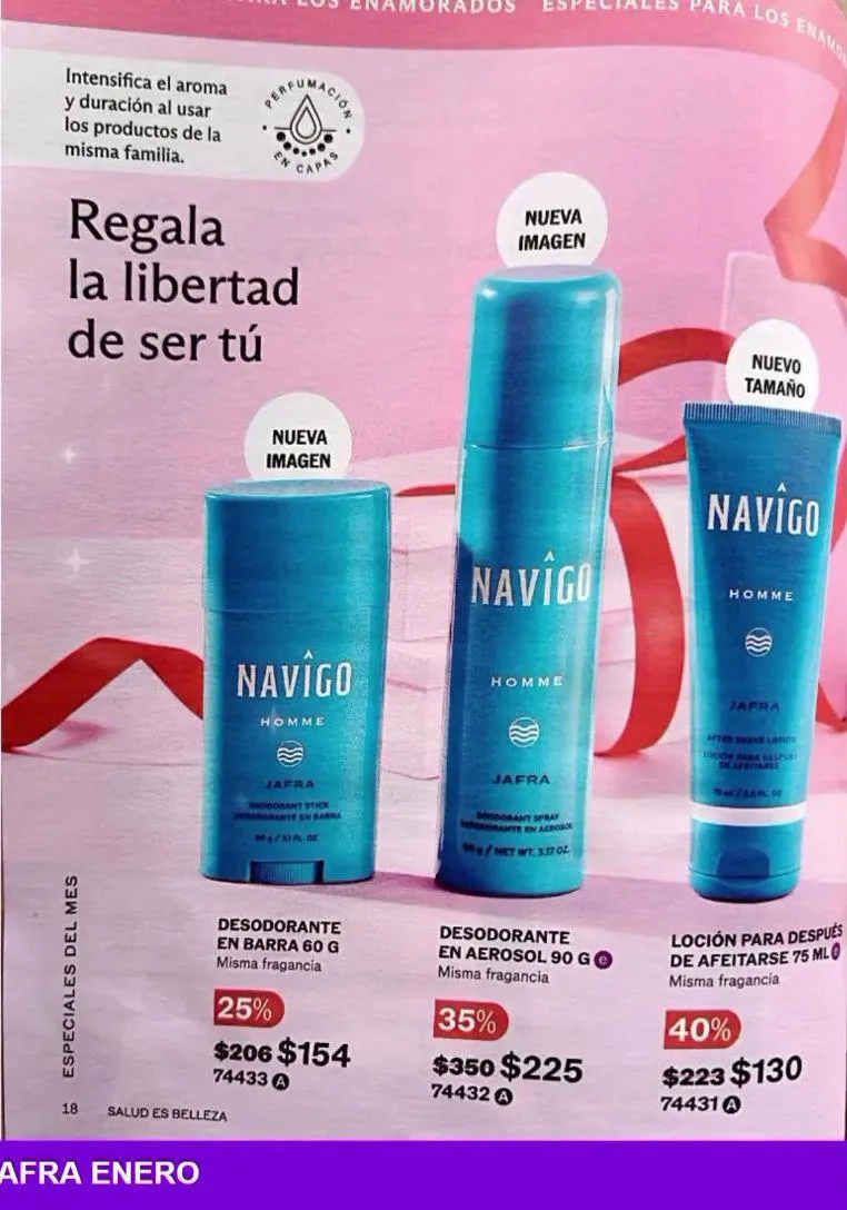 Reflections, London Girl, Double Nature, Essence, Adorisse y muchas otras de tus favoritas están presentes en esta revista que también tiene tentadores aromas para los caballeros. Seguramente a los reyes de casa les encantará incluir alguna colonia de Epic, un desodorante o agua de tocador de Legend o quizás llevar en su bolso al gimnasio una edición de bolsillo de Navigo Ocean. De todo y para todos en esta genial campaña 2026.