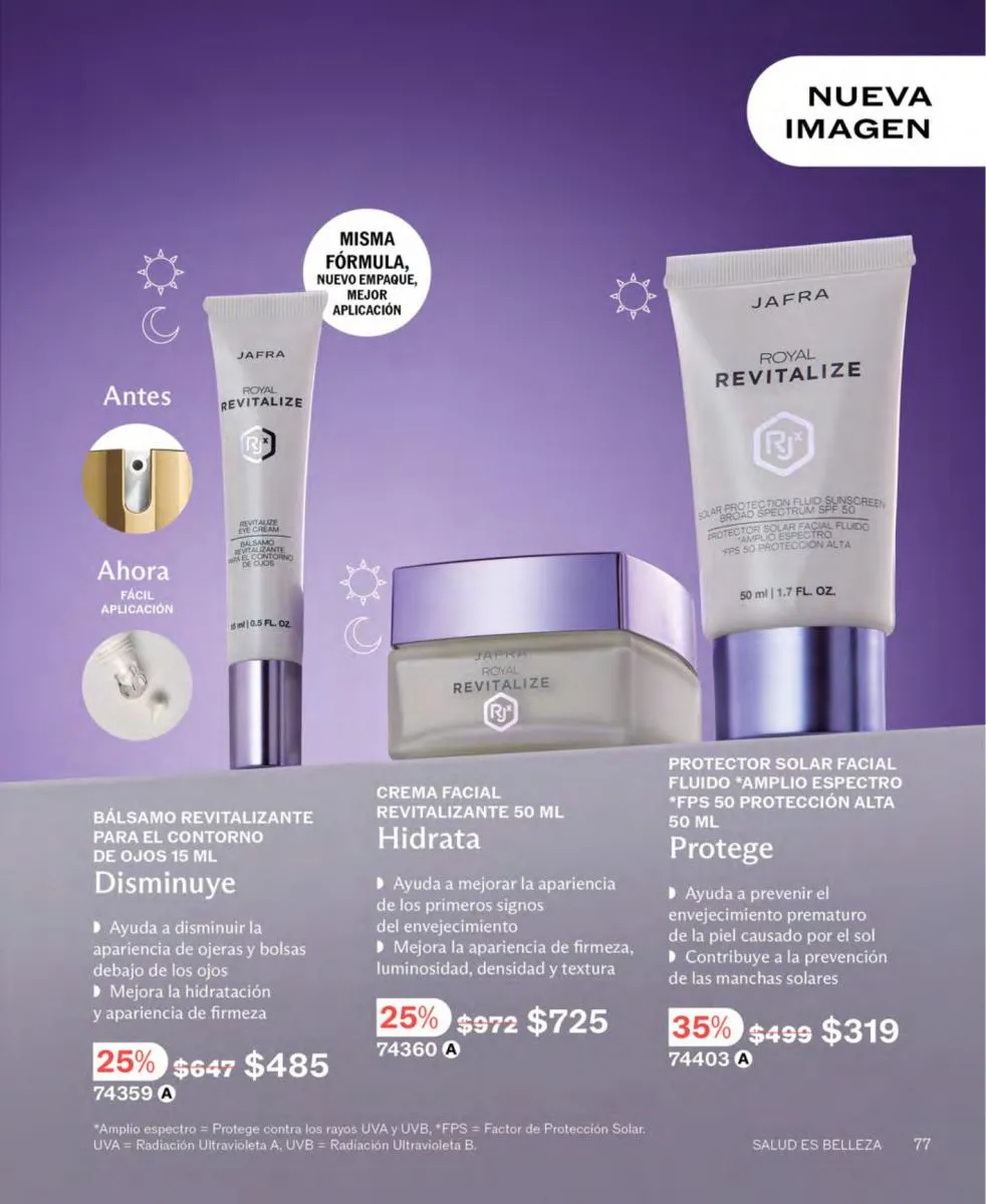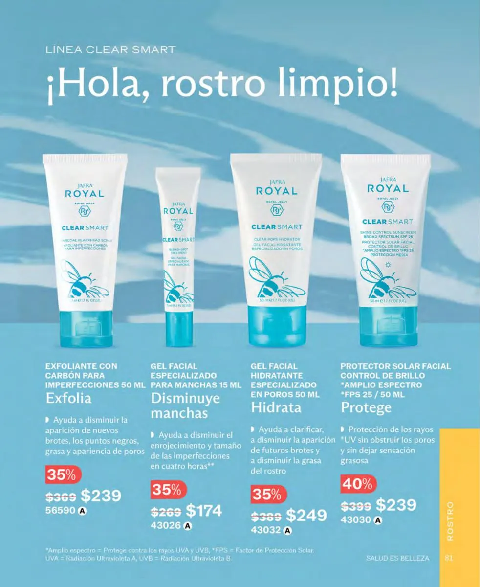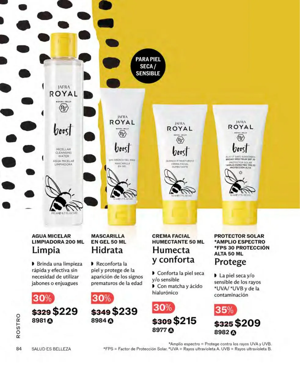 Las líneas Royal, también traen descuento. Ni un día más sin incluir en tu rutina de cuidado tu gel facial, mascarilla volcánica o el suero facial minimizador de líneas de expresión. No metimos al decirte que este es el mes del cuidado personal profundo hecho en el hogar con calidad de salón.