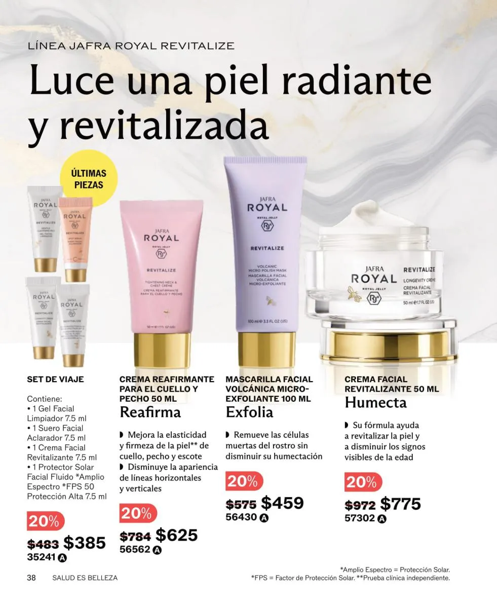 - El set suaviza e ilumina: con la presentación de 100 ml de Royal Jelly y la crema Revitalize