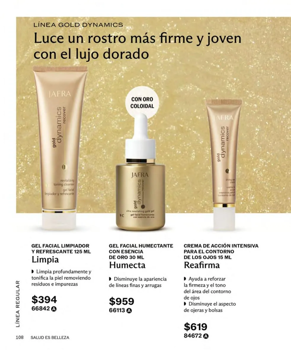 Gold Dynamics es otra línea imperdible. Revisa los productos disponibles a 30% de descuento como las cápsulas faciales o el gel limpiador, refrescante.