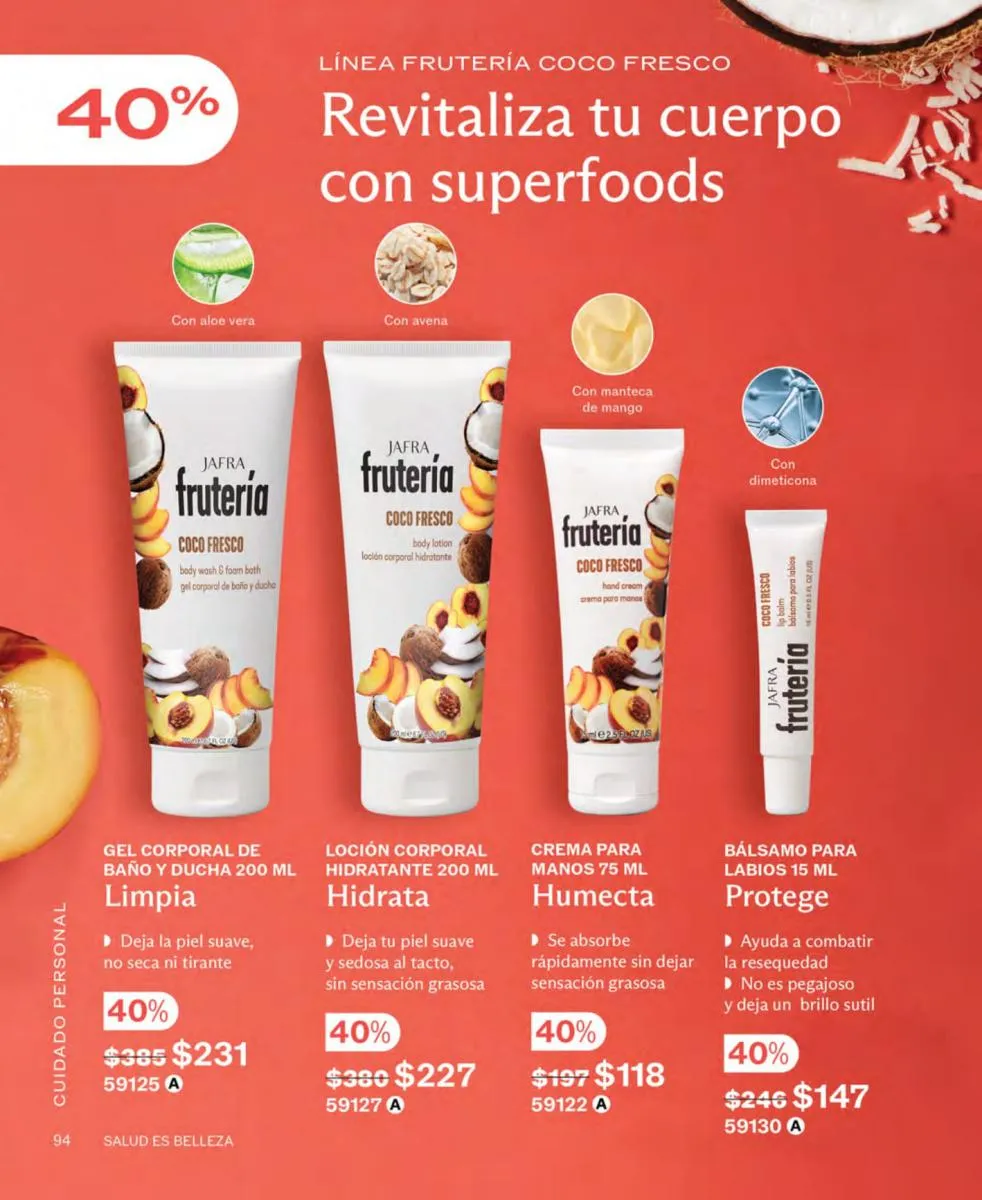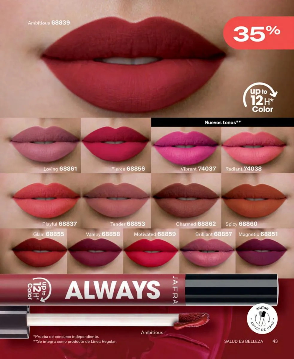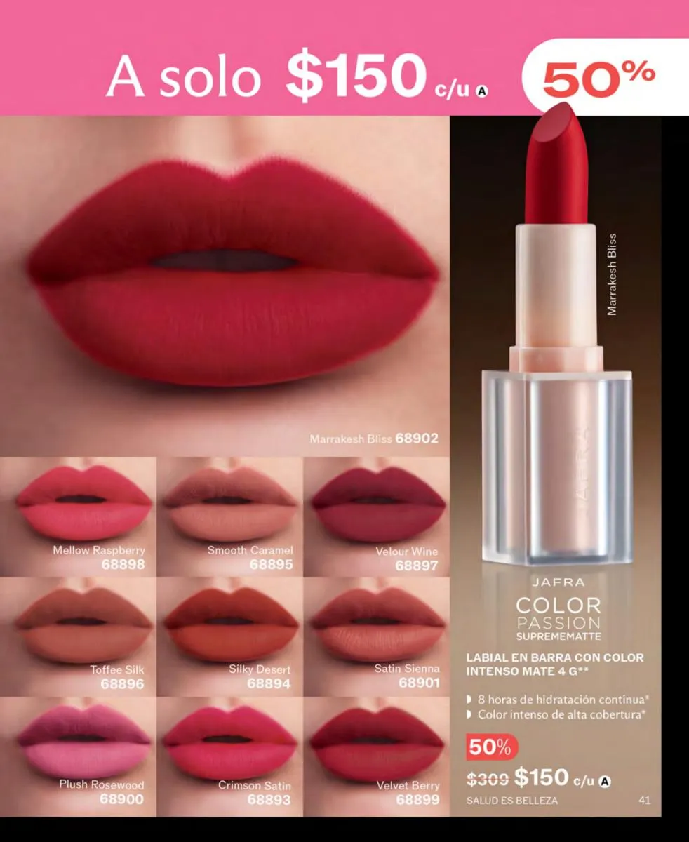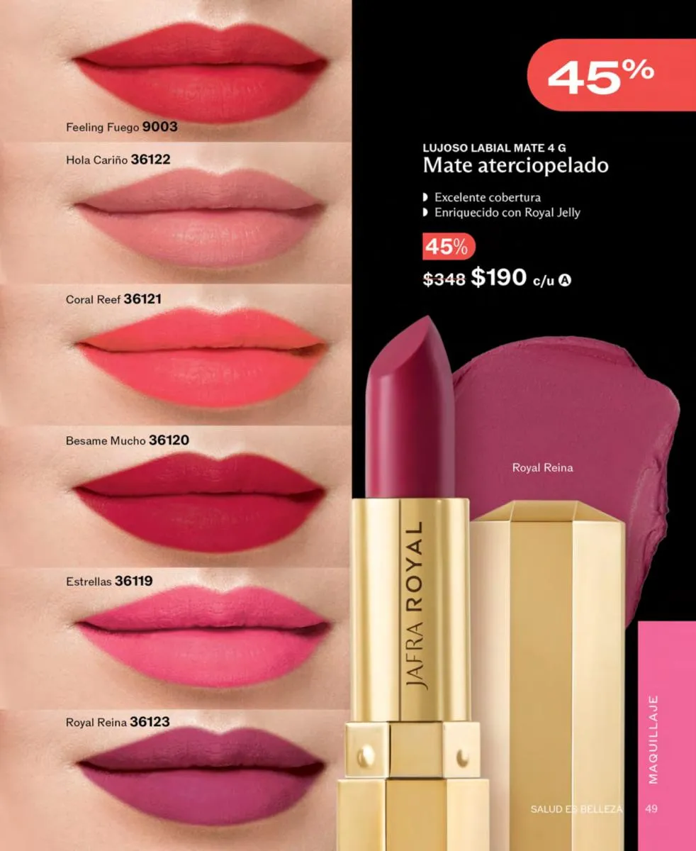 ¿Qué más te ofrece Jafra en este mes de preparativos para las próximas fiestas? Labiales glossy a un 40% de descuento, tintas de color facial multiuso a 20% menos del valor regular o los rubores con 25% de descuento.