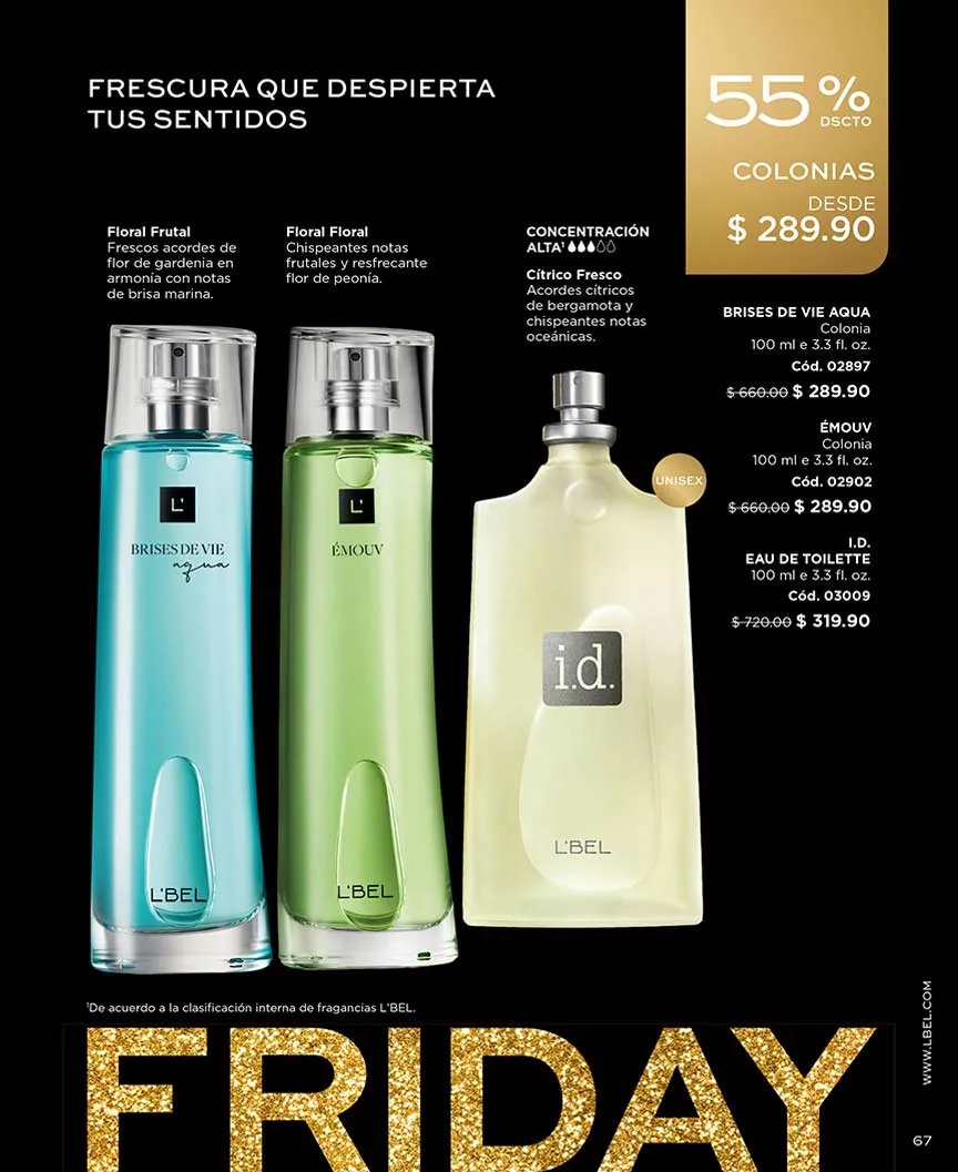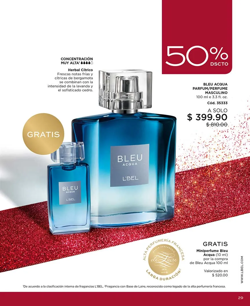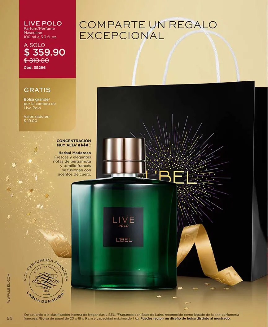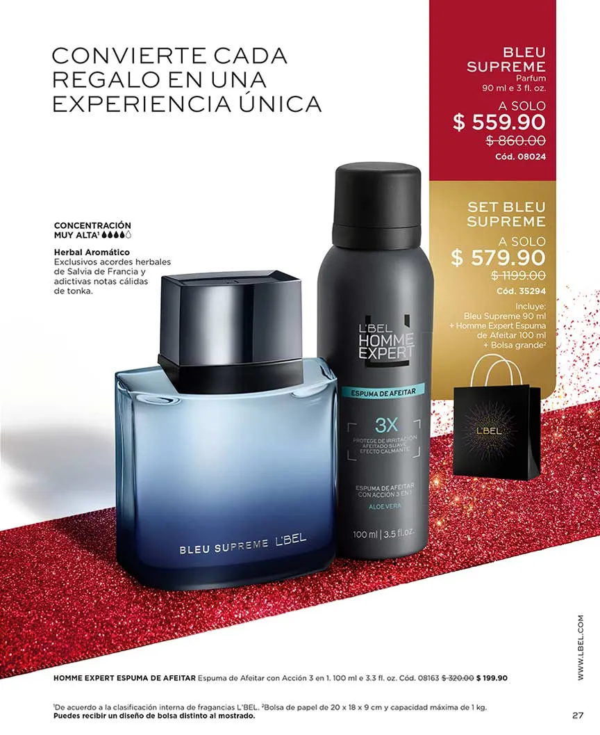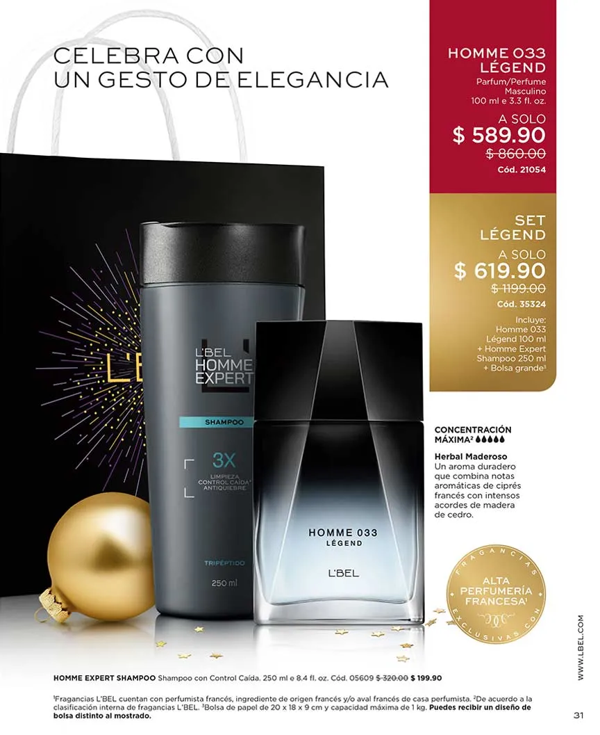 Para caballeros puede considerar un excelente regalo un shampoo Homme junto con la colonia Imprevist o quizás prefieras Homme 033. Igualmente, puedes llevar a un precio de descuentos otras presentaciones como Signature Sky, Bleu Glacial o la preferida más reciente Live Gol.