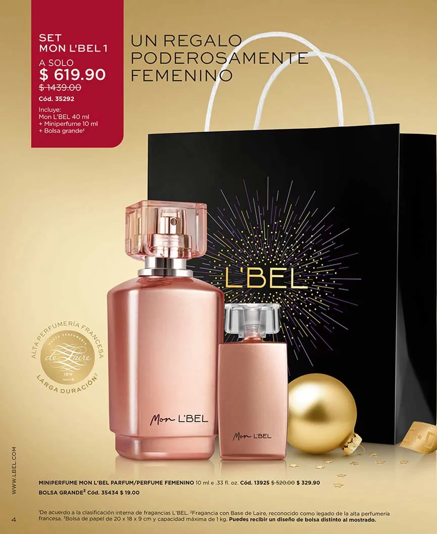 Escoge entre los sets de las diferentes fragancias de dama o caballero con productos complementarios como un obsequio muy completo. ¿Las sugerencias de este mes? Para dama Mon L’Bel en sus presentaciones Rubí y tradicional, que vienen con bolsa de obsequio y polvos compactos y labial con la primera o loción perfumada y delineador la segunda.
