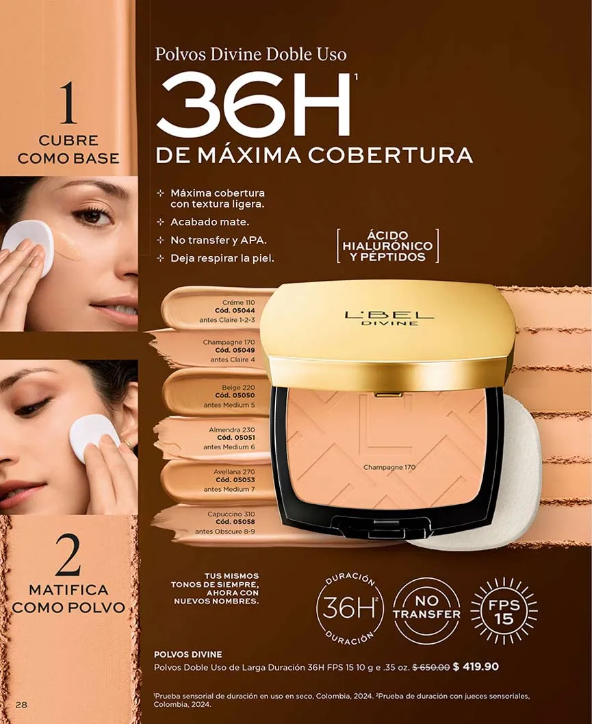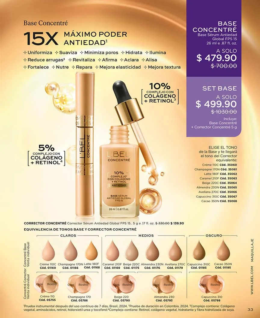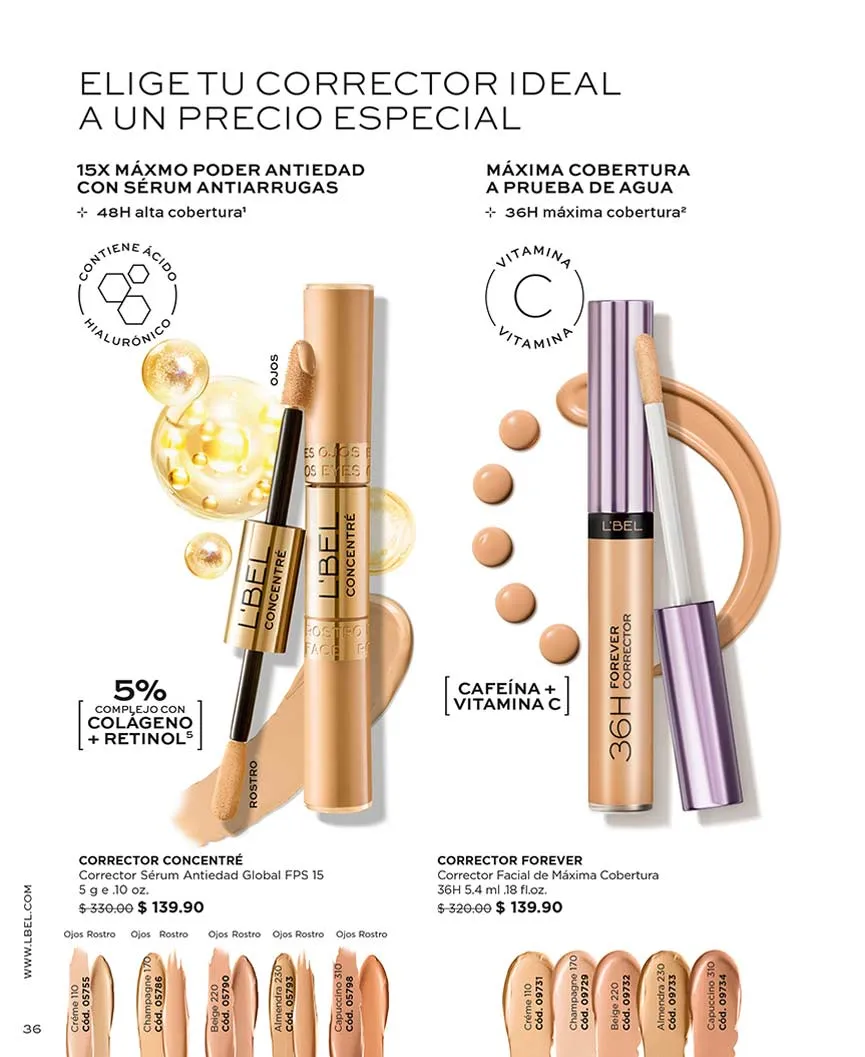 Todos los maquillajes de L´Bel contienen hidratantes, y algunos de ellos FPS, como es el caso de la base “Concentré Toral”, que además, te brinda un acabado aterciopelado y puedes llevar con 50% de descuento. En esta catálogo L’Bel campaña 2 2026 México también encontrarás el “Corrector Dúo” con el mismo descuento.