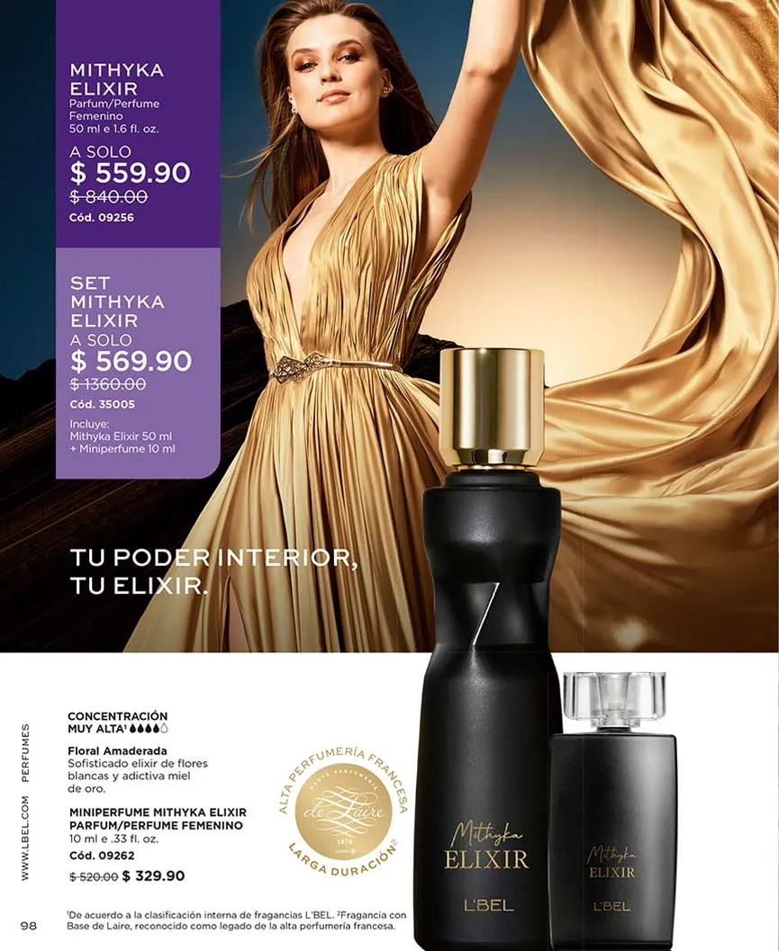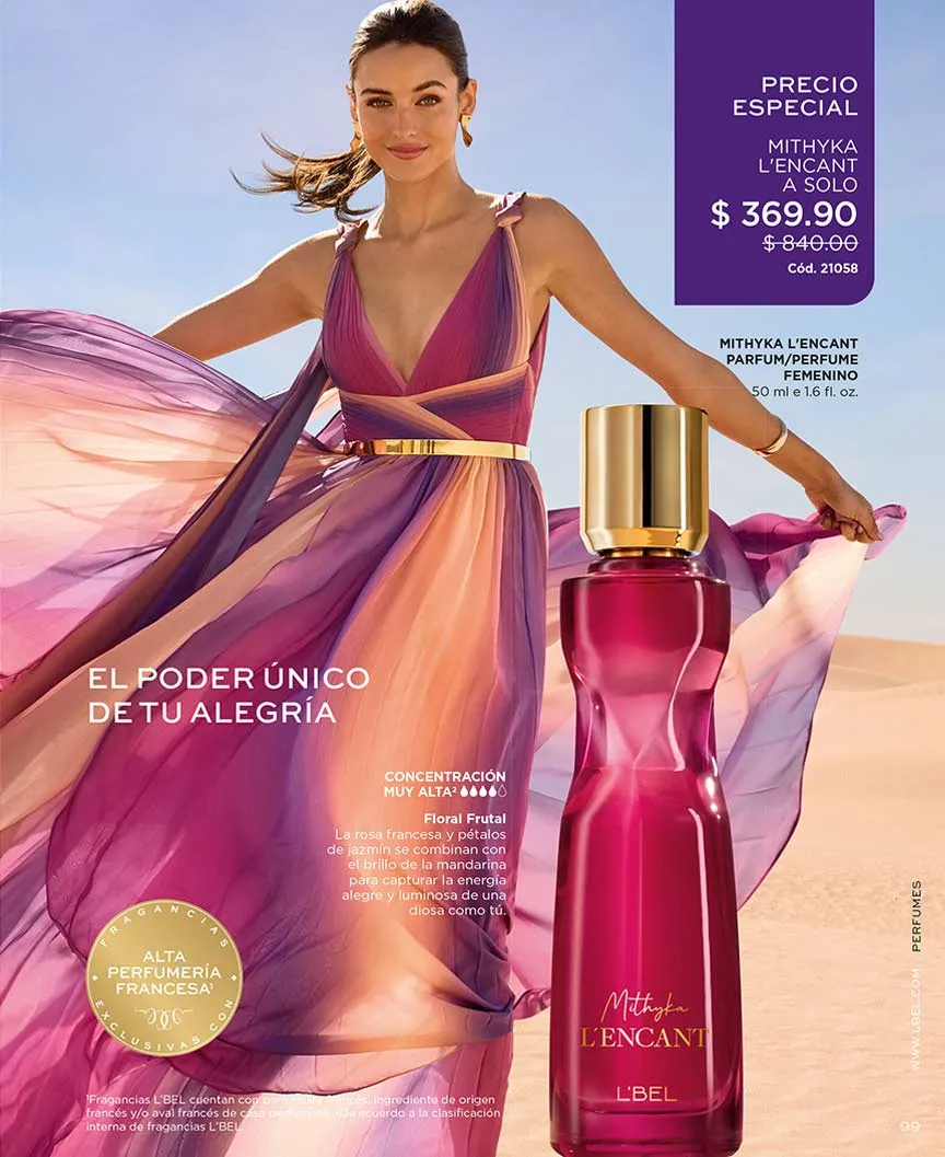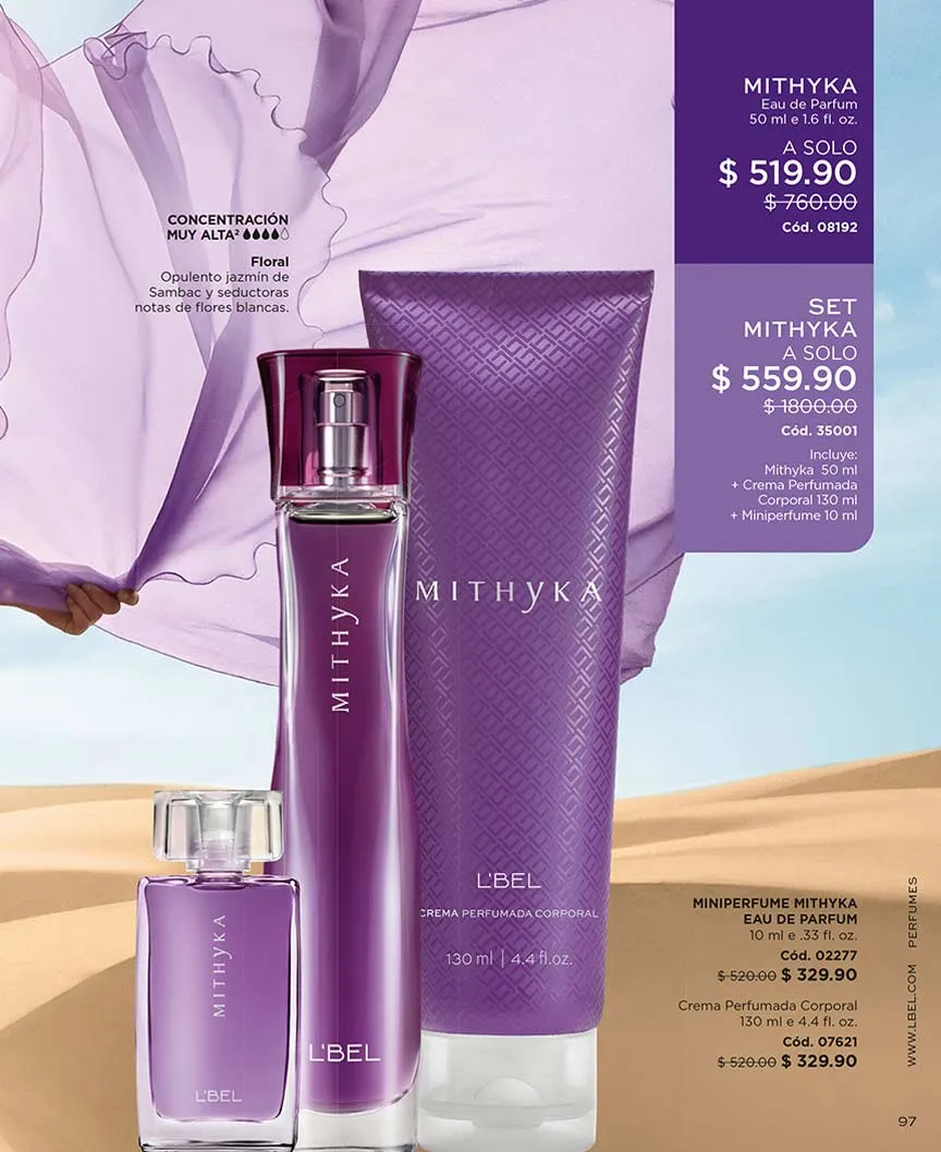 Y los perfumes con tus aromas favoritos están aquí, empezando por el Set “Satín Rouge”, “Rêve Sensuelle”, “Liasson” y “Rose D´Amelie”, todas con bolsa de regalo. Si eres amante de “Mon L´Bel Parfum” puedes llevarla con 50% de descuento. “Mithyka” celebra el amor con Edición Especial, una hermosa presentación acompañada de un polvo compacto “Divine” completamente gratis, + bolsa de regalo. Si prefieres su aroma original, puedes llevarte la loción perfumada + perfume 50 ml + perfume 10 ml + bolsa al precio más bajo.