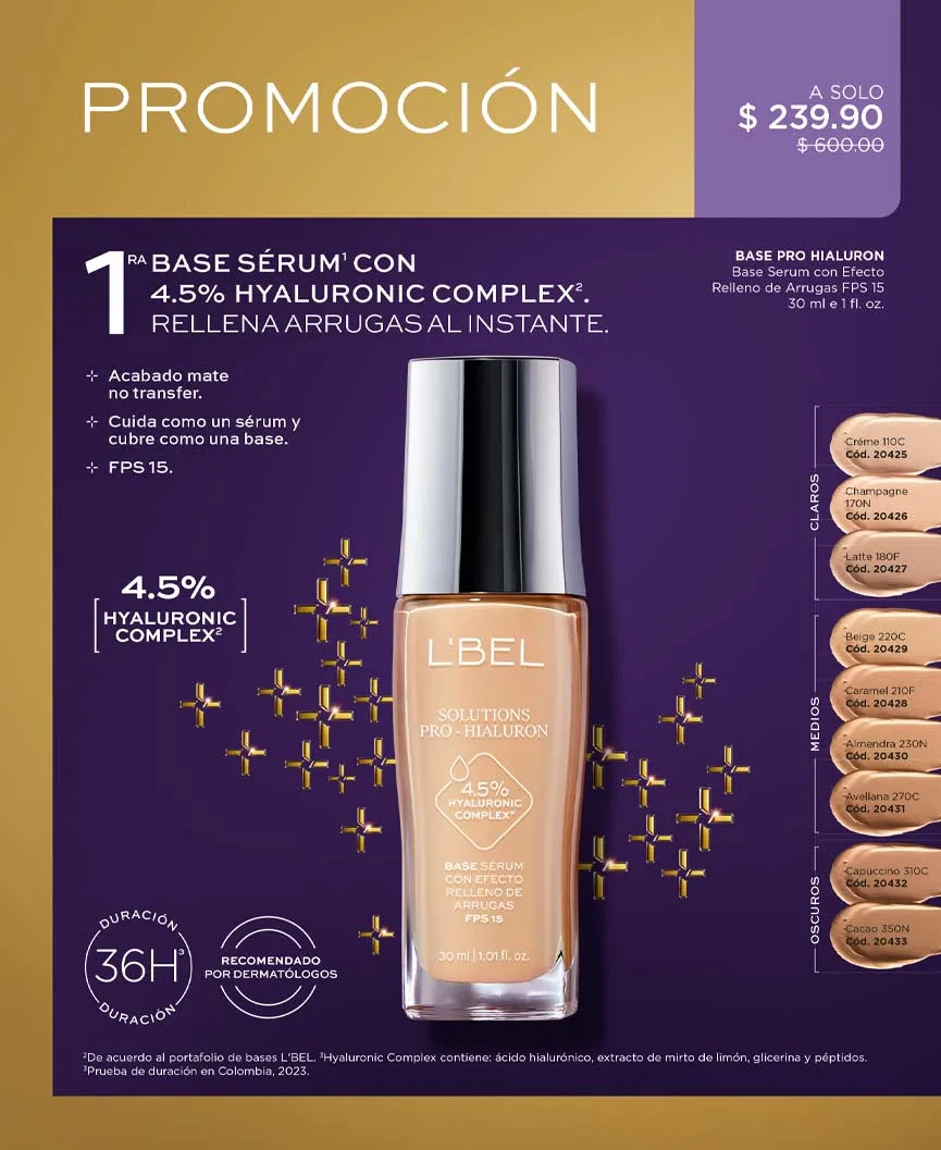 Base minimizadora con FPS 20 en set, con un precio especial. L’Bel es tu complemento perfecto entre salud y belleza, ofertas exclusivas a tu alcance.
